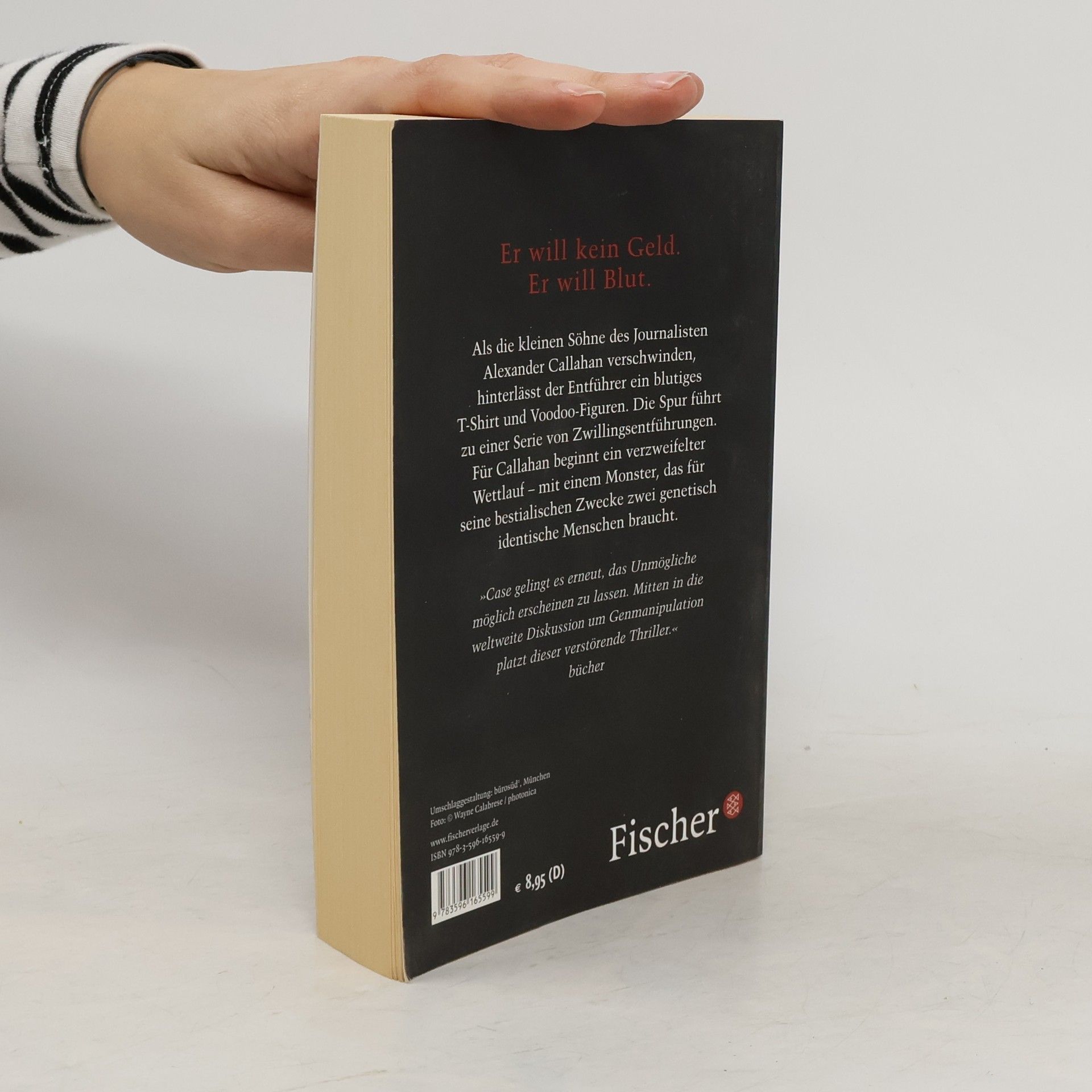 Als Fernsehjournalist kennt Alexander Callahan jede Art von menschlichem Elend. Doch als seine sechsjährigen Zwillingssöhne Sean und Kevin aus einem Freizeitpark verschwinden, ist er auf einmal selbst betroffen. Die Spur führt zu einer Serie von Zwillingsentführungen. Die Polizei kommt nicht weiter – und für Callahan beginnt ein verzweifelter Wettlauf mit einem Monster, das für seine bestialischen Zwecke zwei genetisch identische Menschen braucht.