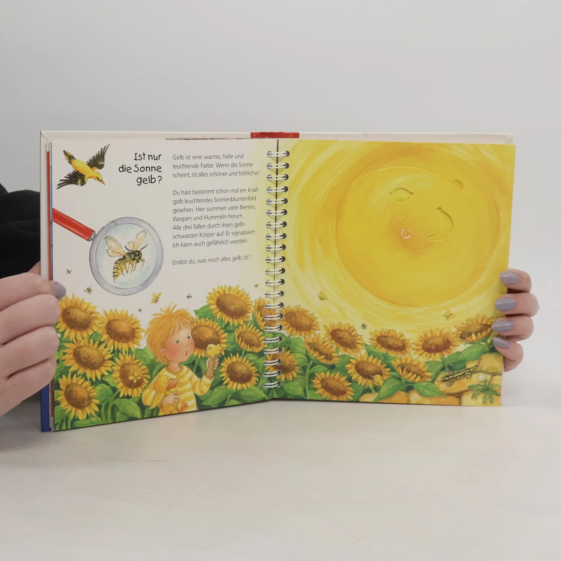 Was ist alles genauso gelb wie die Sonne? Welche Sachen sind blau und welche rot? Und wie schmeckt Orange? Alle sind eingeladen mit diesem fröhlichen Buch spielerisch die Farben zu entdecken.