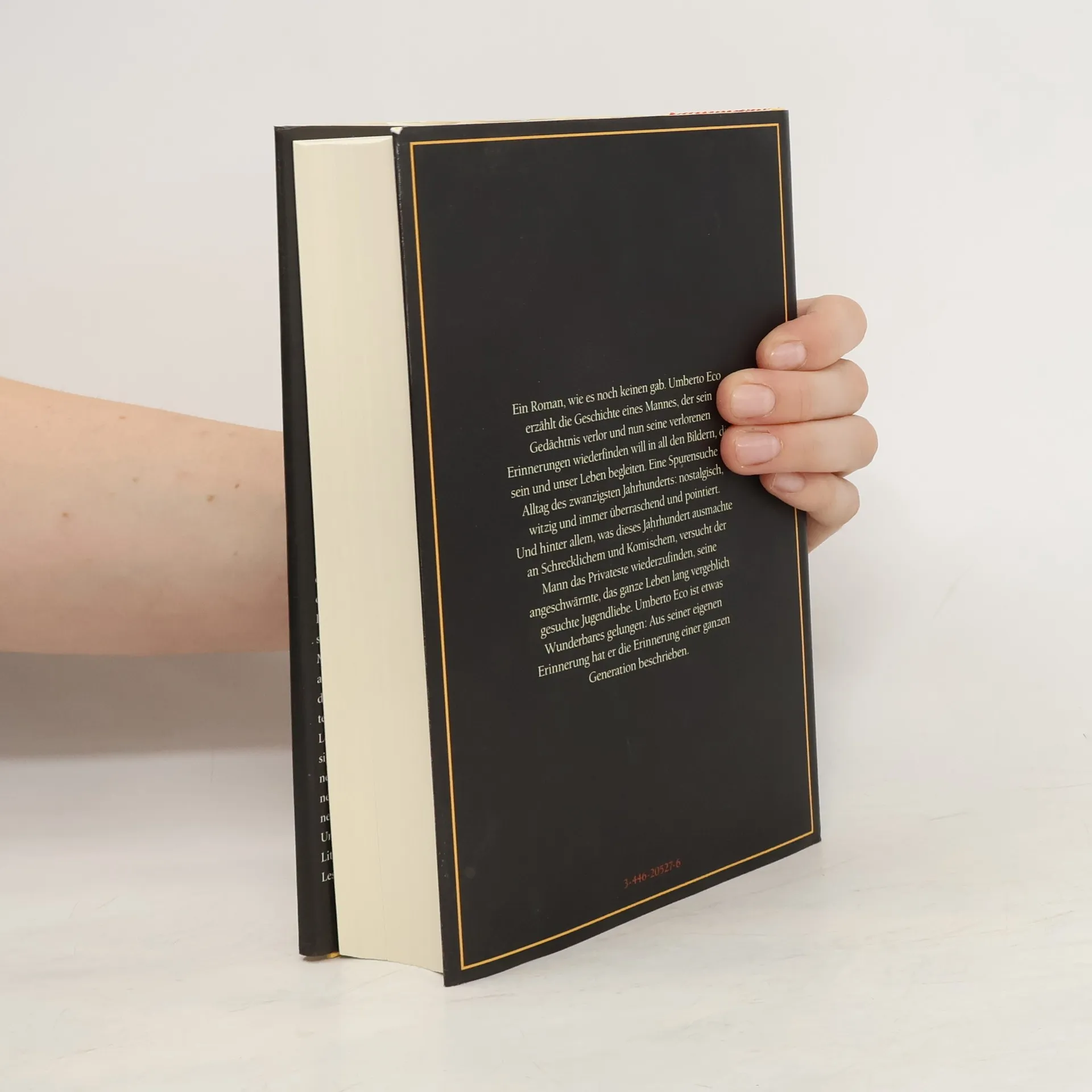 Giambattista Bodoni, Antiquar, erwacht aus dem Koma und hat einen Teil seines Gedächtnisses verloren. Auf der Suche nach seinen persönlichen Erinnerungen fährt er ins Haus seiner Kindheit und findet dort alles wieder: Bücher und Bilder, Comics und Kino, Pastadosen und Zigarettenschachteln. Was für Bodoni eine Reise der Wiederentdeckungen durch sein Leben und seine Lieben wird, gerät Eco zur Zeitreise durch das 20. Jahrhundert: witzig, nostalgisch und überraschend.