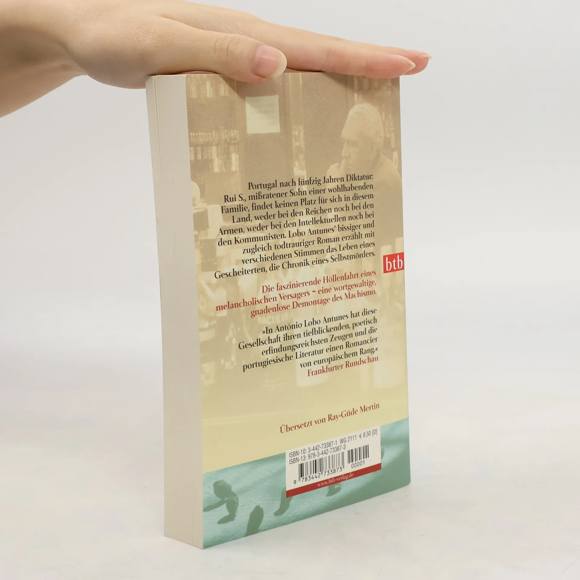 Portugal nach fünfzig Jahren Diktatur: Rui S., missratener Sohn einer wohlhabenden Familie, findet keinen Platz für sich in diesem Land, weder bei den Reichen noch bei den Armen, weder bei den Intellektuellen noch bei den Kommunisten. Lobo Antunes’ bissiger und zugleich todtrauriger Roman erzählt mit verschiedenen Stimmen das Leben eines Gescheiterten, die Chronik eines Selbstmörders.