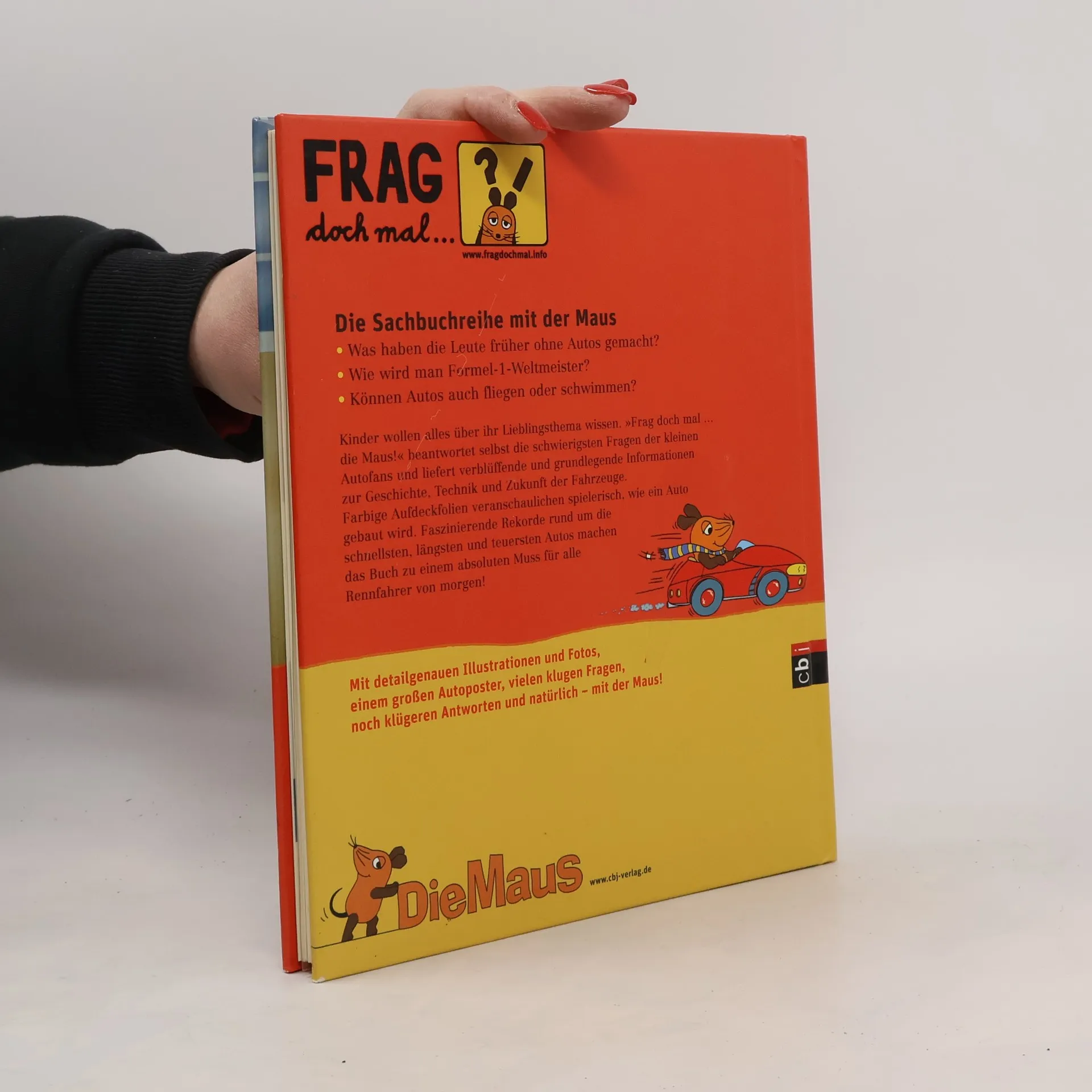 Wenn Kinder Fragen stellen und Erwachsene nicht weiter wissen, heißt es: „Frag doch mal. die Maus!“ Seit 35 Jahren haben die „Sachgeschichten“ in vielen Familien einen besonderen Platz. „Die Sendung mit der Maus“ begeistert sowohl Kinder als auch Erwachsene, indem sie die Welt auf verständliche Weise erklärt. Das Erfolgsprinzip liegt darin, Kinderfragen ernst zu nehmen und sie intensiv zu beantworten. Die dazugehörige Sachbuchreihe weckt mit einfachen, überraschenden Fragen das Interesse an komplexen Themen, die Schritt für Schritt spielerisch und kindgerecht erklärt werden. Ein Beispiel: Können Autos fliegen oder schwimmen? Hier werden auch knifflige Fragen von Autofans beantwortet und spannende Informationen zur Geschichte, Technik und Zukunft von Fahrzeugen geliefert. Mit farbigen Aufdeckfolien, die Einblicke ins Innenleben der Autos geben, sowie überraschenden Zahlen und Rekorden ist das Buch ein Muss für zukünftige Rennfahrer. Jeder Band bietet: - Wichtige Schlüsselthemen, die Kinder interessieren - Antworten auf zentrale Kinderfragen - Sorgfältig recherchierte Informationen von renommierten Autoren - Schrittweise Erklärungen komplexer Sachverhalte - Unterstützung durch kindgerechte Illustrationen und Fotos - Enge Zusammenarbeit mit der MAUS-REDAKTION für Qualität und Originalität - Hochwertige Ausstattung mit zahlreichen Extras, die den spielerischen Charakter unterstreichen.