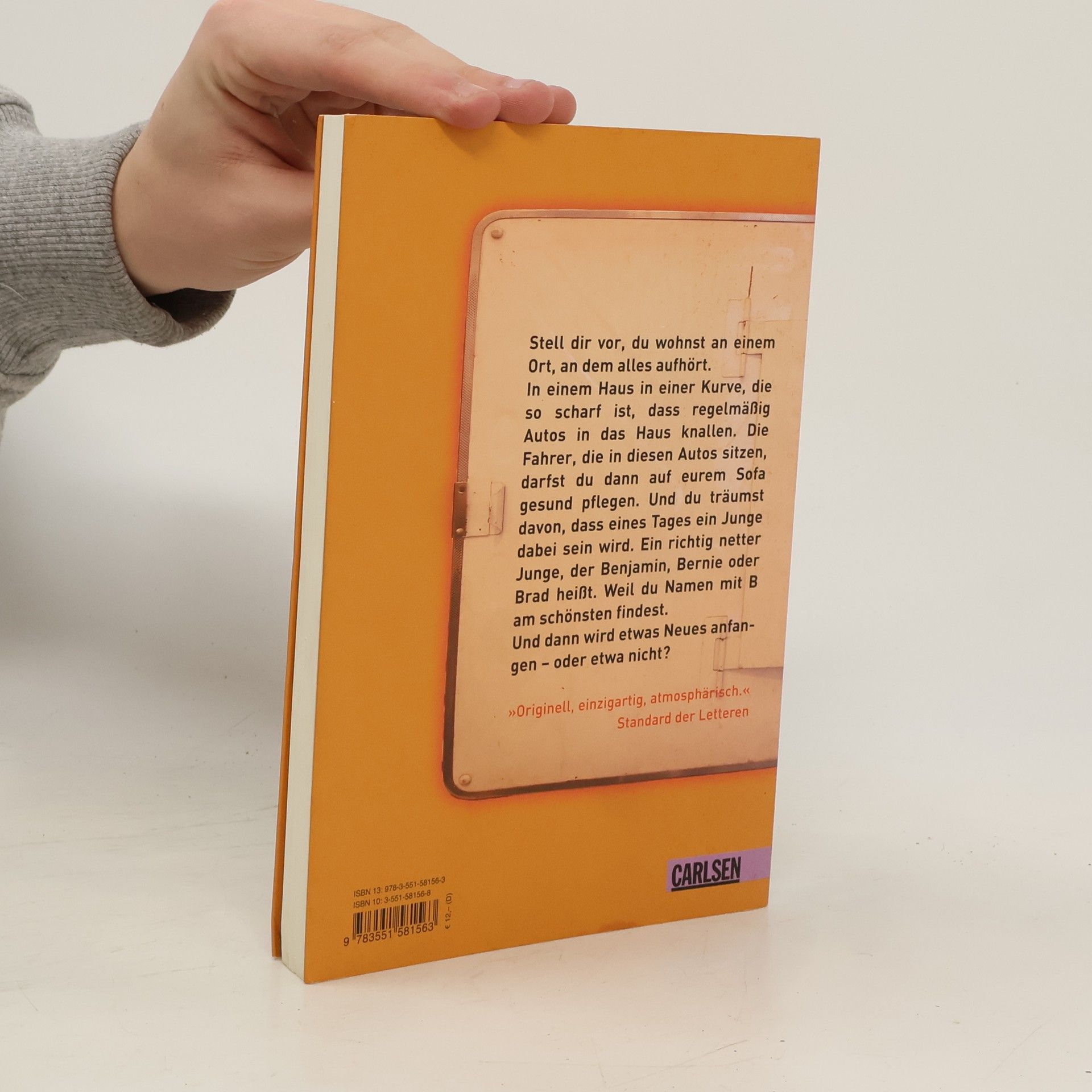Ein Mädchen, das von einem Jungen träumt, dessen Name mit B anfangen sollte. Ein Vater, der tagein, tagaus auf einem Sofa sitzt. Eine Mutter, die nicht mehr weiß, warum sie den Mann auf dem Sofa geheiratet hat. Eine Oma, die seit Opas Tod kein Wort mehr spricht. Und ein Haus in einer Kurve, an einer Straße, die zu einer halb fertigen Brücke führt. Stell dir vor, du wohnst in diesem Haus. Ein Haus in einer Kurve, die so scharf ist, dass regelmäßig Autos in das Haus knallen. Die Fahrer, die in diesen Autos sitzen, darfst du dann auf eurem Sofa gesund pflegen. Und vielleicht wird eines Tages ein Junge dabei sein, ein richtig netter Junge, der Benjamin, Bernie oder Brad heißt. Willkommen in meinem Leben!