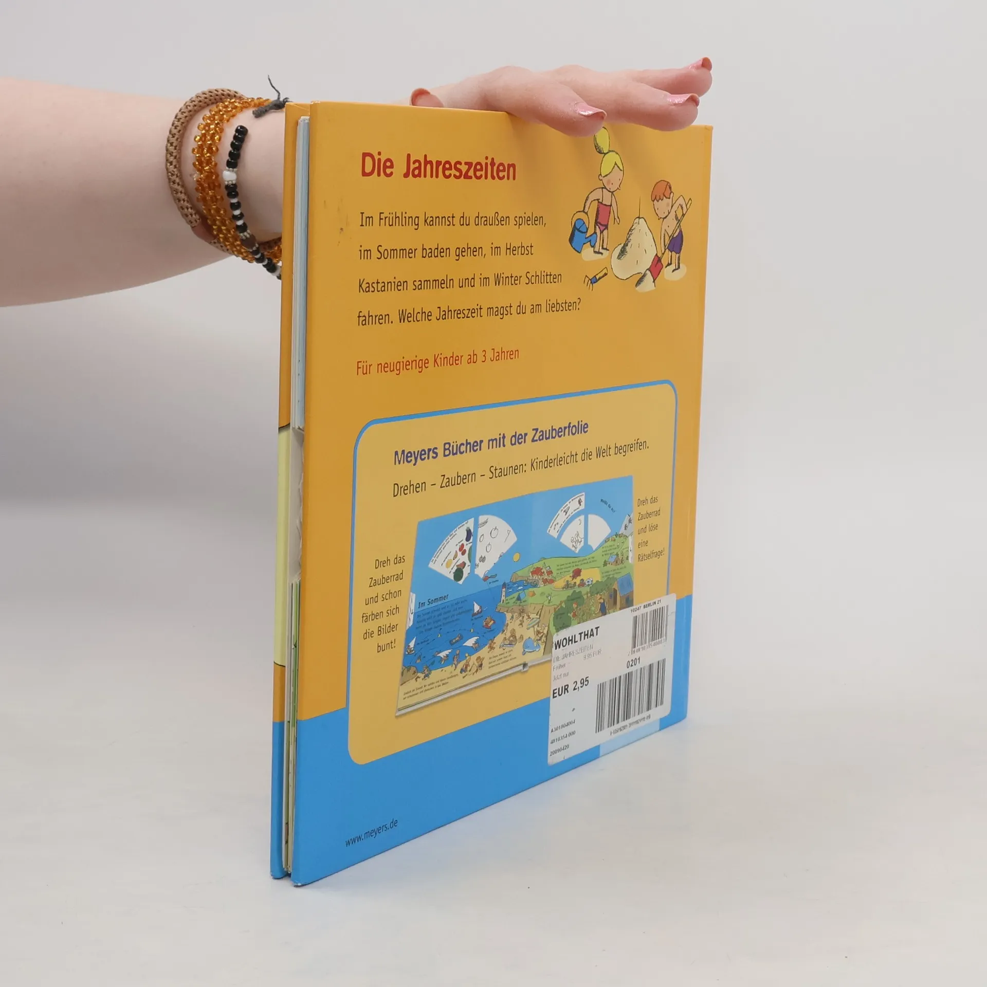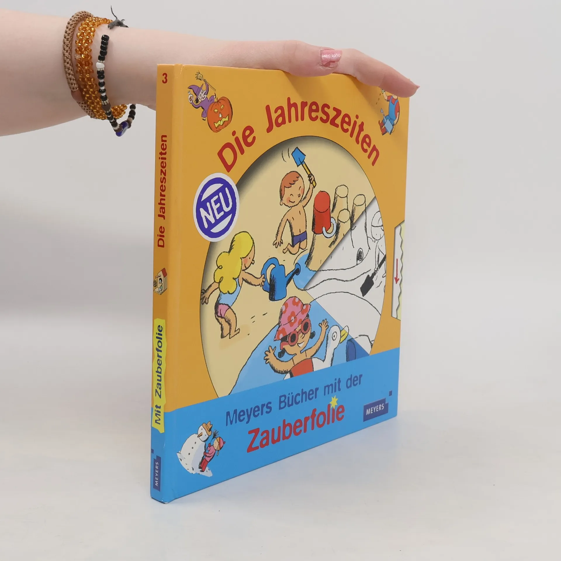 Drehen – zaubern – staunen: „Meyers - Bücher mit der Zauberfolie“ vermitteln spannende Lerninhalte auf spielerische Weise. Beim Bewegen der Drehscheibe färben sich schwarz-weiße Bilder wie von Zauberhand bunt und geben Antwort auf Rätselfragen. Auf doppelseitigen Panoramaillustrationen können Kinder ab 3 Jahren außerdem viele interessante Details entdecken. In diesem Band lernen die Kleinen die Jahreszeiten kennen: Im Frühling kann man draußen spielen, im Sommer baden gehen, im Herbst Kastanien sammeln und im Winter Schlitten fahren.