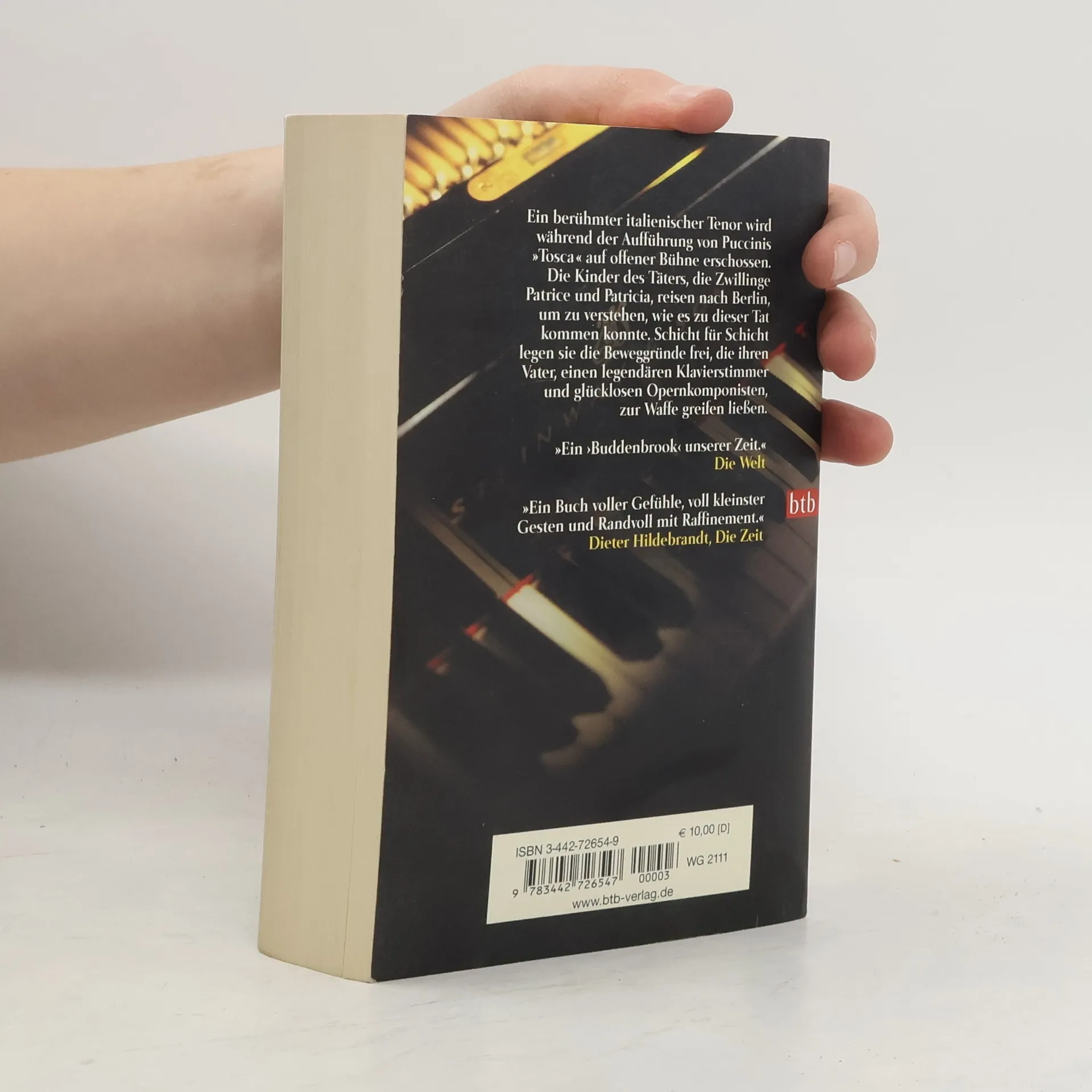 Ein berühmter italienischer Tenor wird während der Aufführung von Puccinis „Tosca“ auf offener Bühne erschossen. Die Kinder des Täters, die Zwillinge Patrice und Patricia, reisen nach Berlin, um zu verstehen, wie es zu dieser Tat kommen konnte. Schicht für Schicht legen sie die Beweggründe frei, die ihren Vater, einen legendären Klavierstimmer und glücklosen Opernkomponisten, zur Waffe greifen ließen. Jahre zuvor waren sie vor ihrer inzestuösen Liebe in verschiedene Hemisphären geflohen. Ihr Wiedersehen und die zunächst unbegreifliche Tat des Vaters führen dazu, daß sie ihre Sprachlosigkeit beenden und aufschreiben, wie sie ihre einstige Intimität erlebt haben. Ein befreiender Prozeß des Erinnerns beginnt.