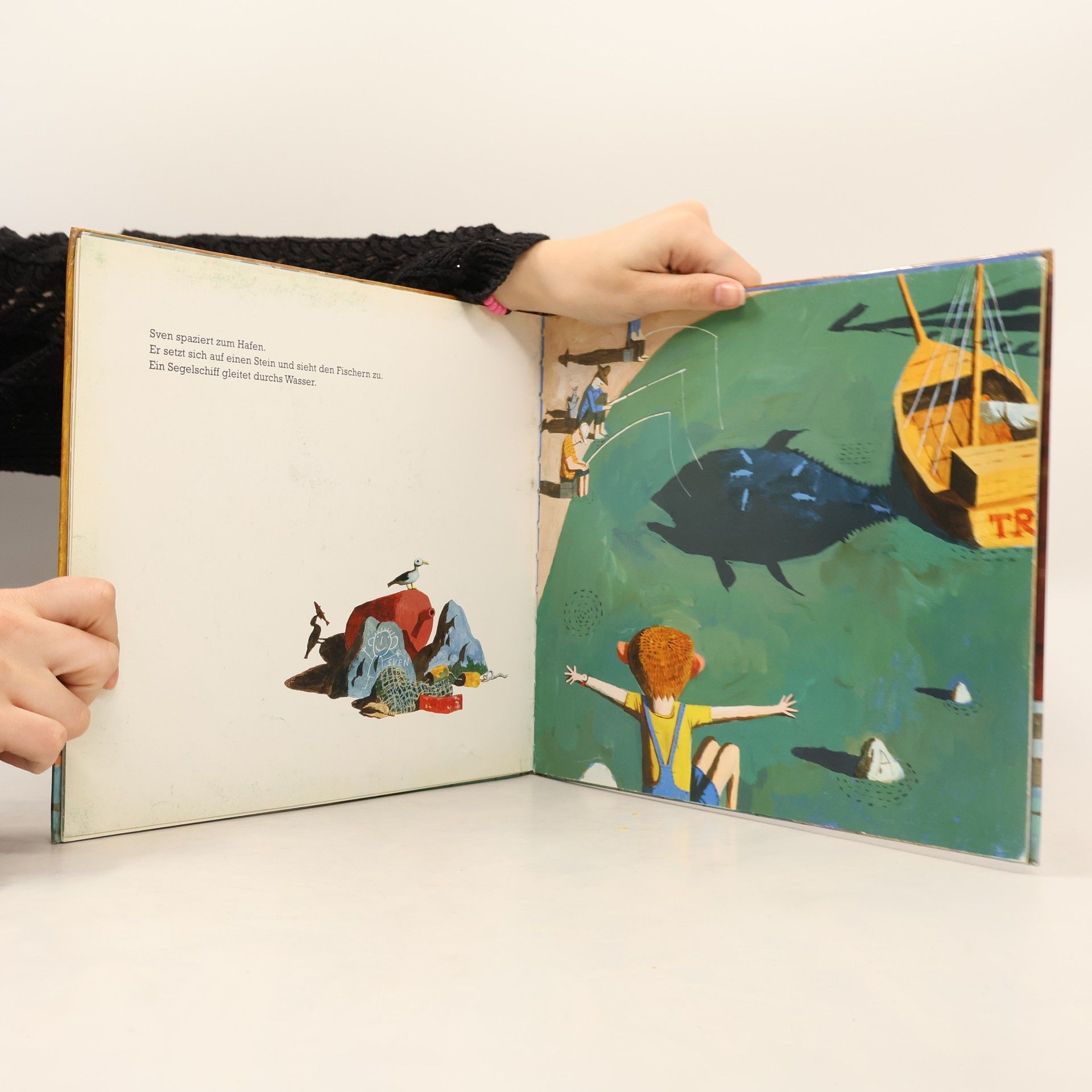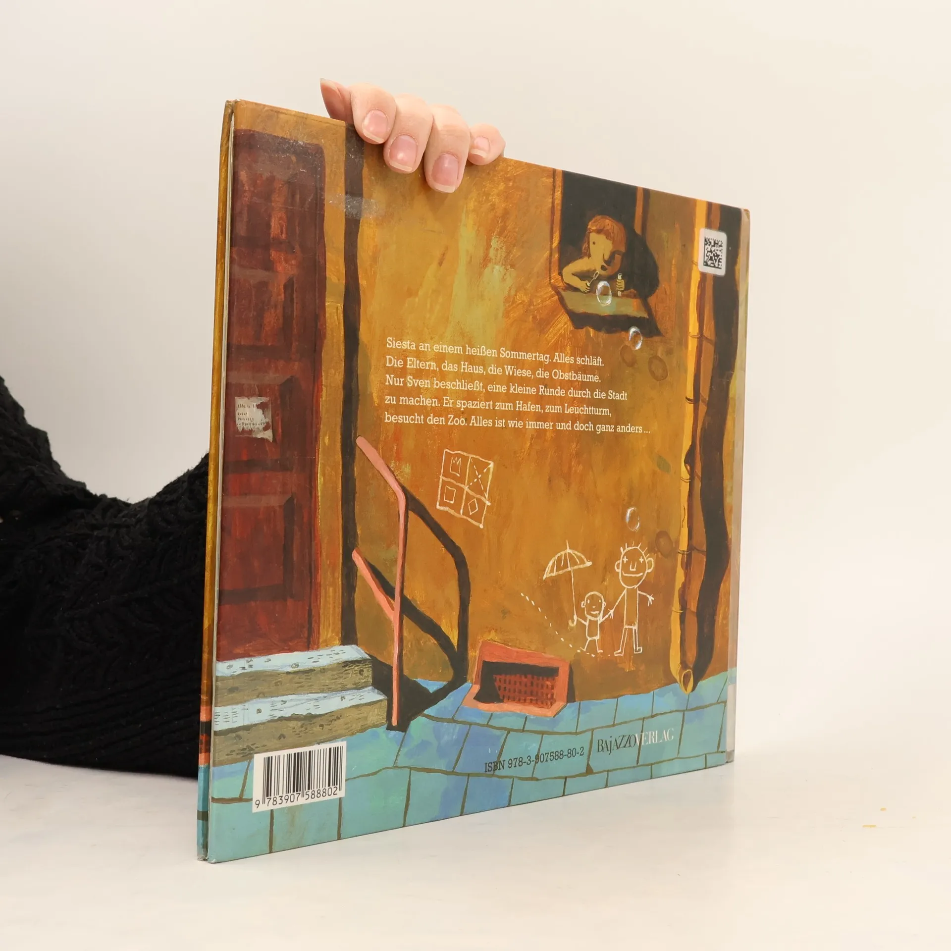 Ein heißer Sommertag. Zeit für eine Siesta im Garten. Alles schläft. Die Eltern, das Haus, die Wiese, die Obstbäume. Nur Sven nicht und die Schatten nicht. Sven beschließt, eine kleine Runde durch die Stadt zu machen. Er geht hinunter zum Hafen, beobachtet einen riesigen Hund und eine Katze, einen Mann und eine Frau. Dann geht er zu seinem Lieblingsplatz am Leuchtturm. Und er besucht den Zoo. Die Schatten begleiten ihn und führen dabei ihr ganz eigenes Leben. Ist das Traum oder Realität?