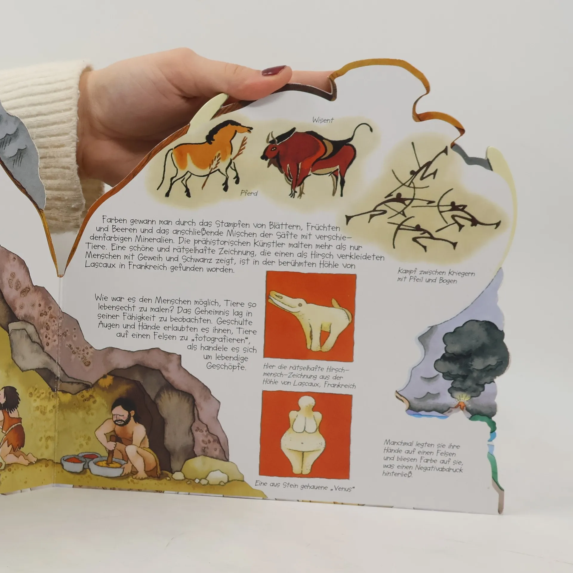 Pappbilderbuch in Form eines Mammuts, in dem vom Leben in der Steinzeit erzählt wird. Ab 3.