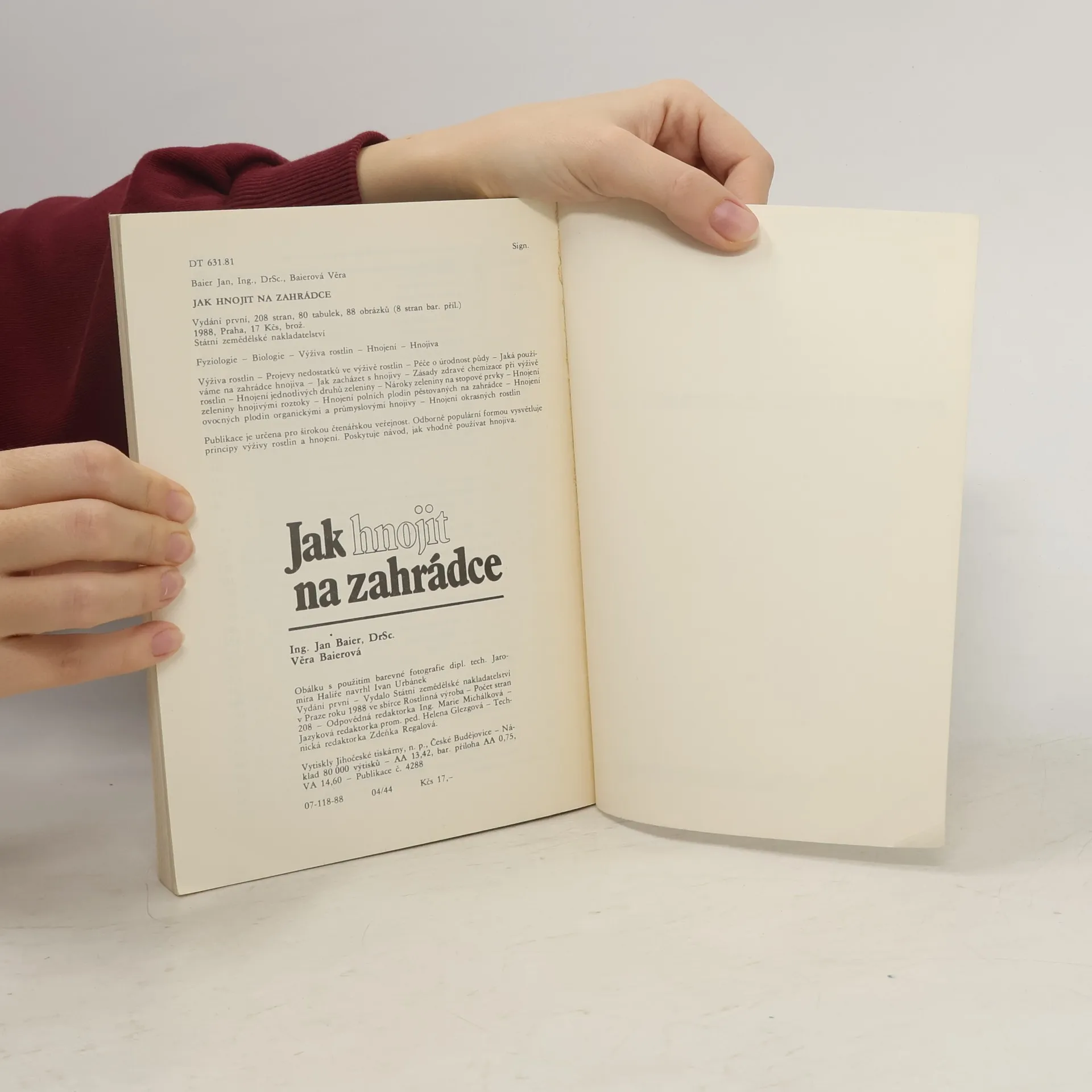 Publikace je určena pro širokou čtenářskou veřejnost. Populárně odbornou formou vysvětluje principy výživy rostlin a hnojení zeleniny, ovocných plodin a okrasných rostlin. Poskytuje návod, jak vhodně používat organická i průmyslová hnojiva.