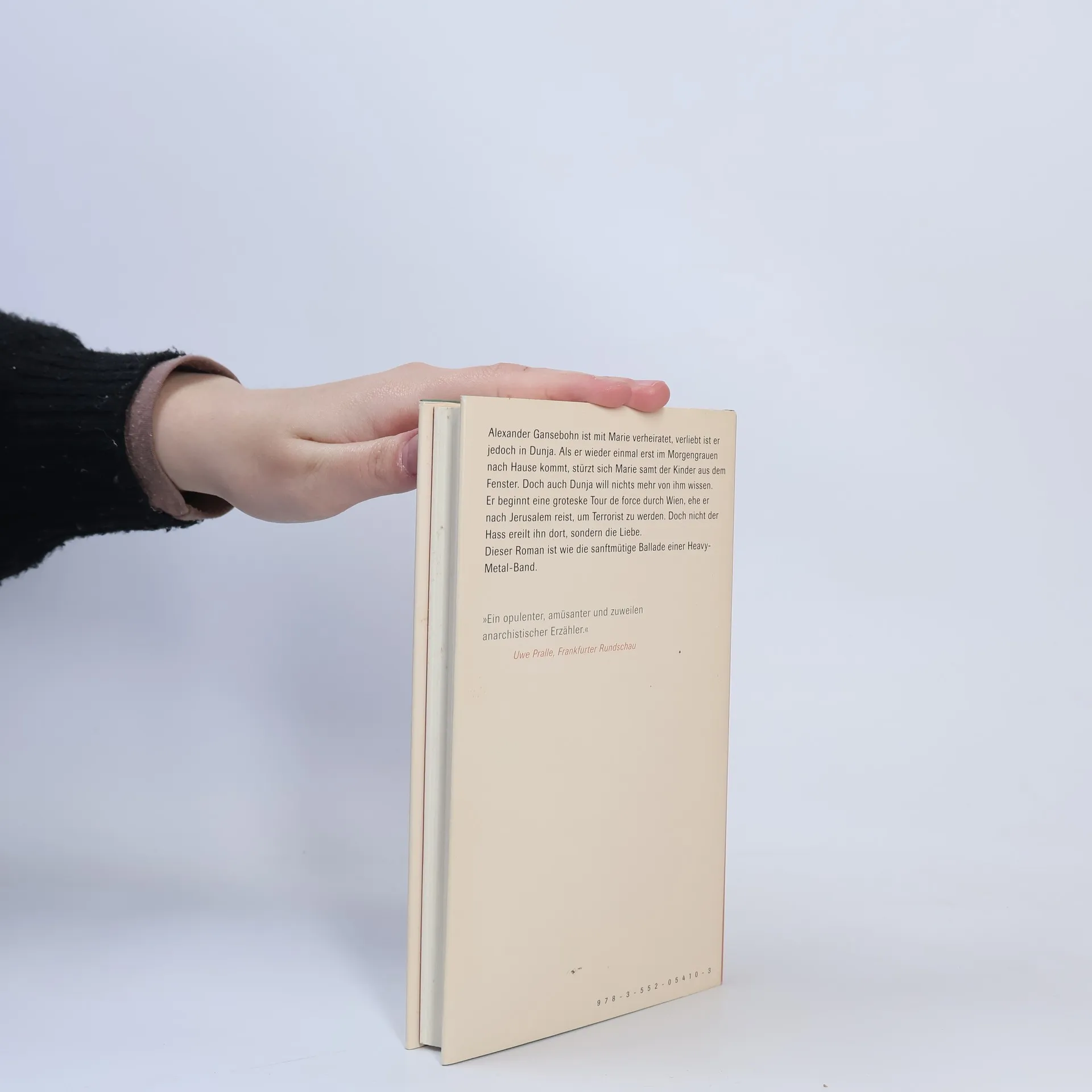 Alexander Gansebohn ist mit Marie verheiratet, verliebt ist er jedoch in Dunja. Als er wieder einmal erst im Morgengrauen nach Hause kommt, stürzt sich Marie samt der Kinder aus dem Fenster. Auch Dunja will nichts mehr von ihm wissen. Er beginnt eine groteske Tour de force, die Alexander zuerst durch Wien führt, ehe er nach Jerusalem reist, um Terrorist zu werden. Doch nicht der Hass ereilt ihn dort, sondern die Liebe. Leidenschaftlich fabuliert Franzobel von der großen Liebe, diesem fragwürdig gewordenen, doch unersetzbaren Konzept des Abendlandes. Ein Roman wie die sanftmütige Ballade einer Heavy-Metal-Band.