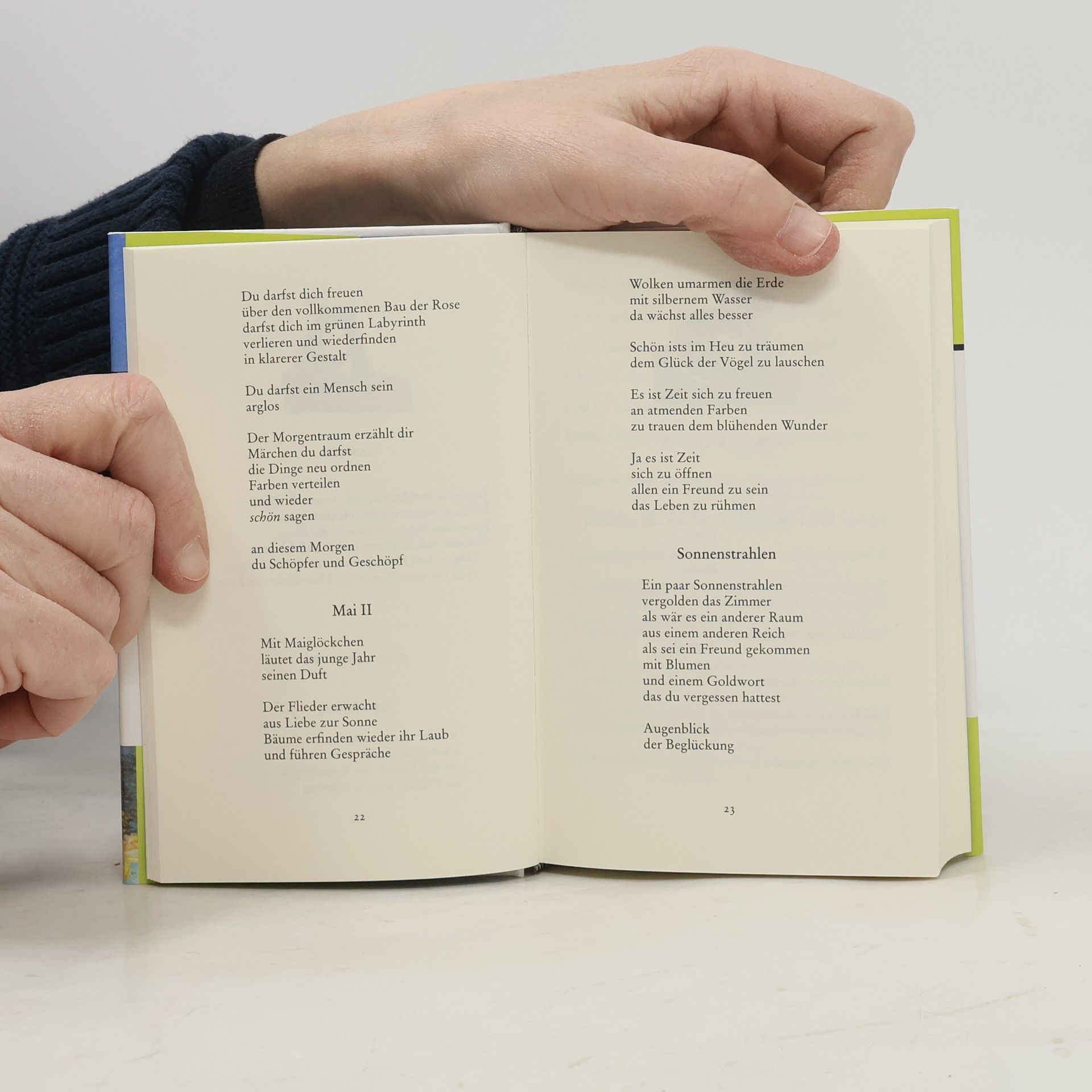 Nicht jedem ist ein frohes Gemüt in die Wiege gelegt worden - beim Lesen dieser Anthologie aber stellt sich die Lebensfreude gleichsam automatisch ein. Mit Gedichten von Eduard Mörike und Ingeborg Bachmann, Friedrich Hölderlin und Sarah Kirsch. Und vielen, vielen anderen. Klassiker wie Schillers Ode An die Freude sind selbstverständlich auch dabei.