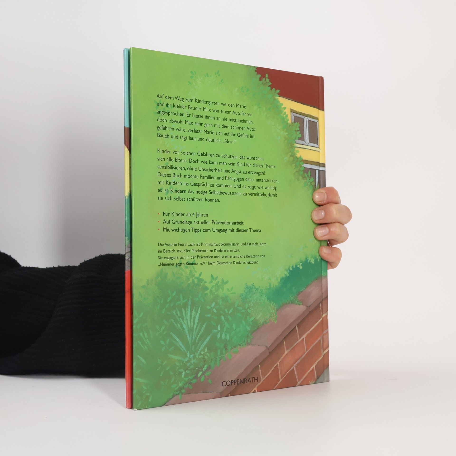 Auf dem Weg zum Kindergarten werden Marie und ihr Bruder Max von einem Autofahrer angesprochen. Er bietet ihnen an, sie mitzunehmen, doch obwohl Max sehr gern in dem schönen Auto gefahren wäre, verlässt sich Marie auf ihr Gefühl im Bauch und sagt laut und deutlich:„Nein!“. Kinder vor solchen Gefahren zu schützen, das wünschen sich alle Eltern. Aber wie kann man sein Kind für dieses Thema sensibilisieren, ohne Unsicherheit und Angst zu erzeugen? Diese Buch möchte Familien und Pädagogen dabei unterstützen, mit Kindern ins Gespräch zu kommen. Und es zeigt, Wie wichtig es ist, Kindern das nötige Selbstbewußtsein zu vermitteln, damit sie sich selbst schützen können.