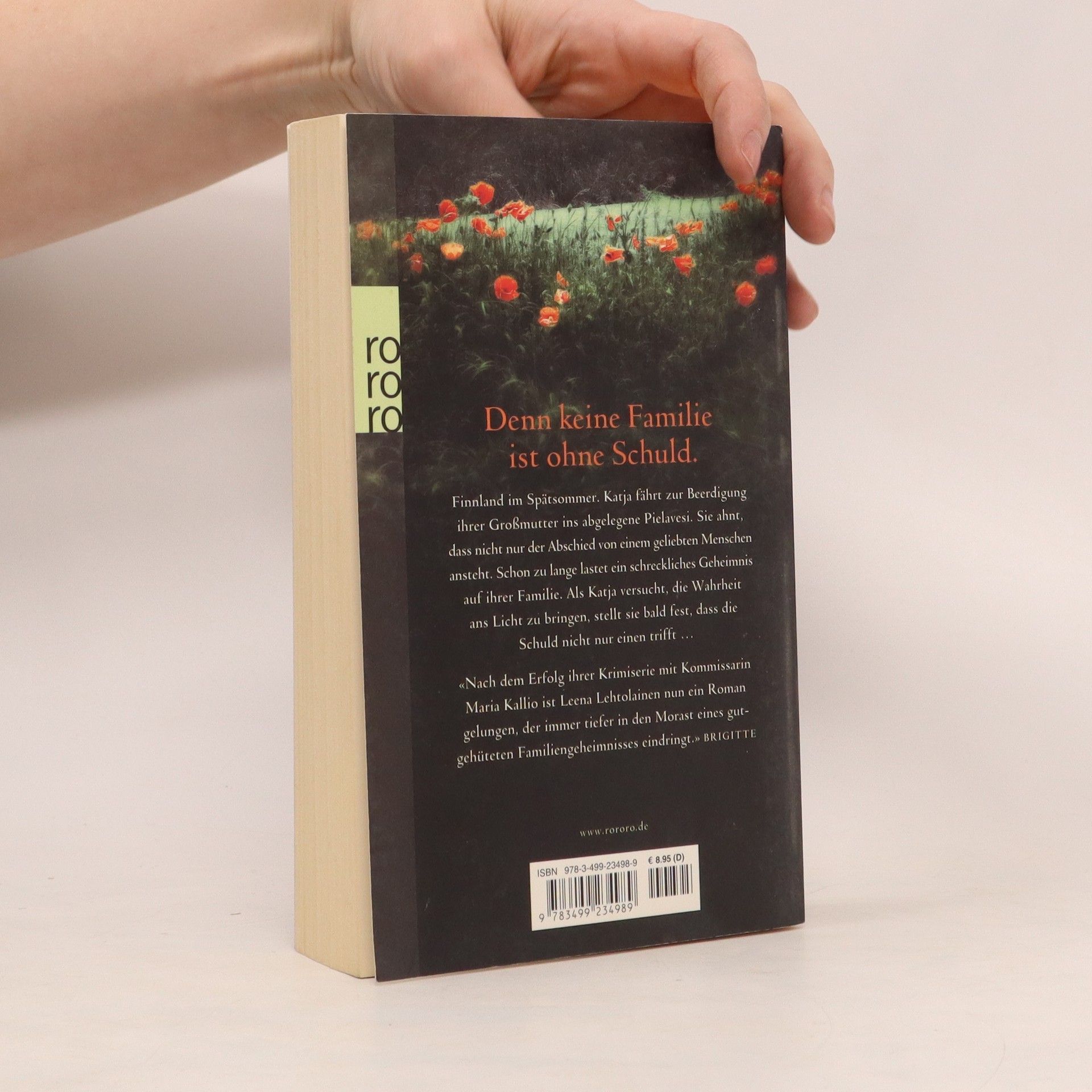 Denn keine Familie ist ohne Schuld. Finnland im Spätsommer. Katja fährt zur Beerdigung ihrer Großmutter ins abgelegene Pielavesi. Sie ahnt, dass nicht nur der Abschied von einem geliebten Menschen ansteht. Schon zu lange lastet ein schreckliches Geheimnis auf ihrer Familie. Als Katja versucht, die Wahrheit ans Licht zu bringen, stellt sie bald fest, dass die Schuld nicht nur einen trifft ... «Nach dem Erfolg ihrer Krimiserie mit Kommissarin Maria Kallio ist Leena Lehtolainen nun ein Roman gelungen, der immer tiefer in den Morast eines gutgehüteten Familiengeheimnisses eindringt.» Brigitte