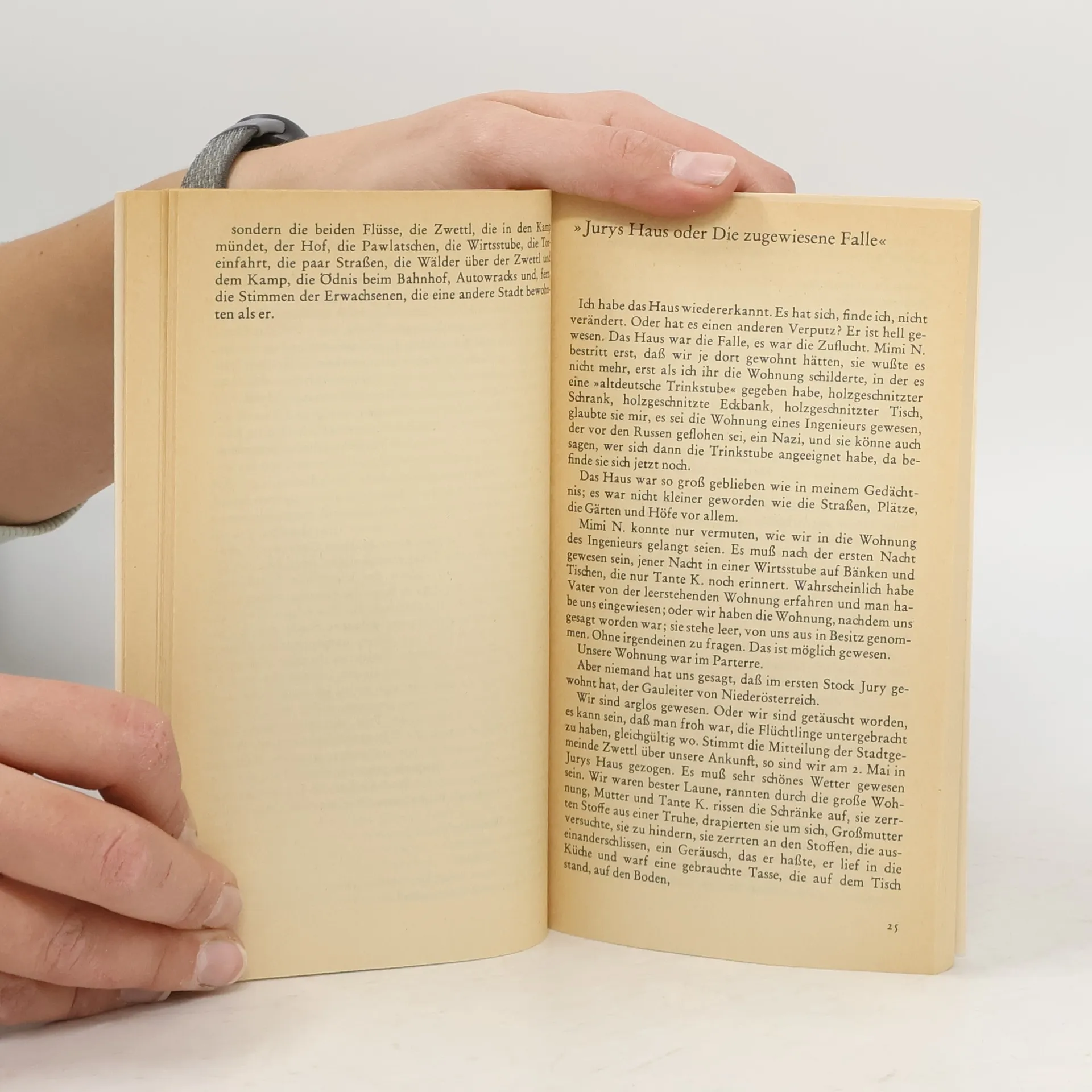 Auf der Suche nach der verlorenen Kindheit Zwettl, das ist eine kleine Stadt im niederösterreichischen Waldviertel, hundert Kilometer nordwestlich von Wien. Hier erlebt Familie H. die letzten Tage des Krieges. Hier wird der zwölfjährige Peter im ersten Friedensjahr endgültig seiner Kindheit beraubt. Sechsundzwanzig Jahre später kehrt der Autor an diesen Ort zurück und beginnt seine Erinnerungsarbeit: » Ich habe mir vorgenommen, genau diese Zeitspanne zu beschreiben, mein Gedächtnis zu prüfen, und das anderer, dem nachzugehen, was ich nicht mehr bin, was ich nur noch andeutungsweise weiß, was ich mir nacherzähle, was mir dieser und jener erzählt, was im Vergleich nicht standhält, was in einige Geschichten zerfällt.«