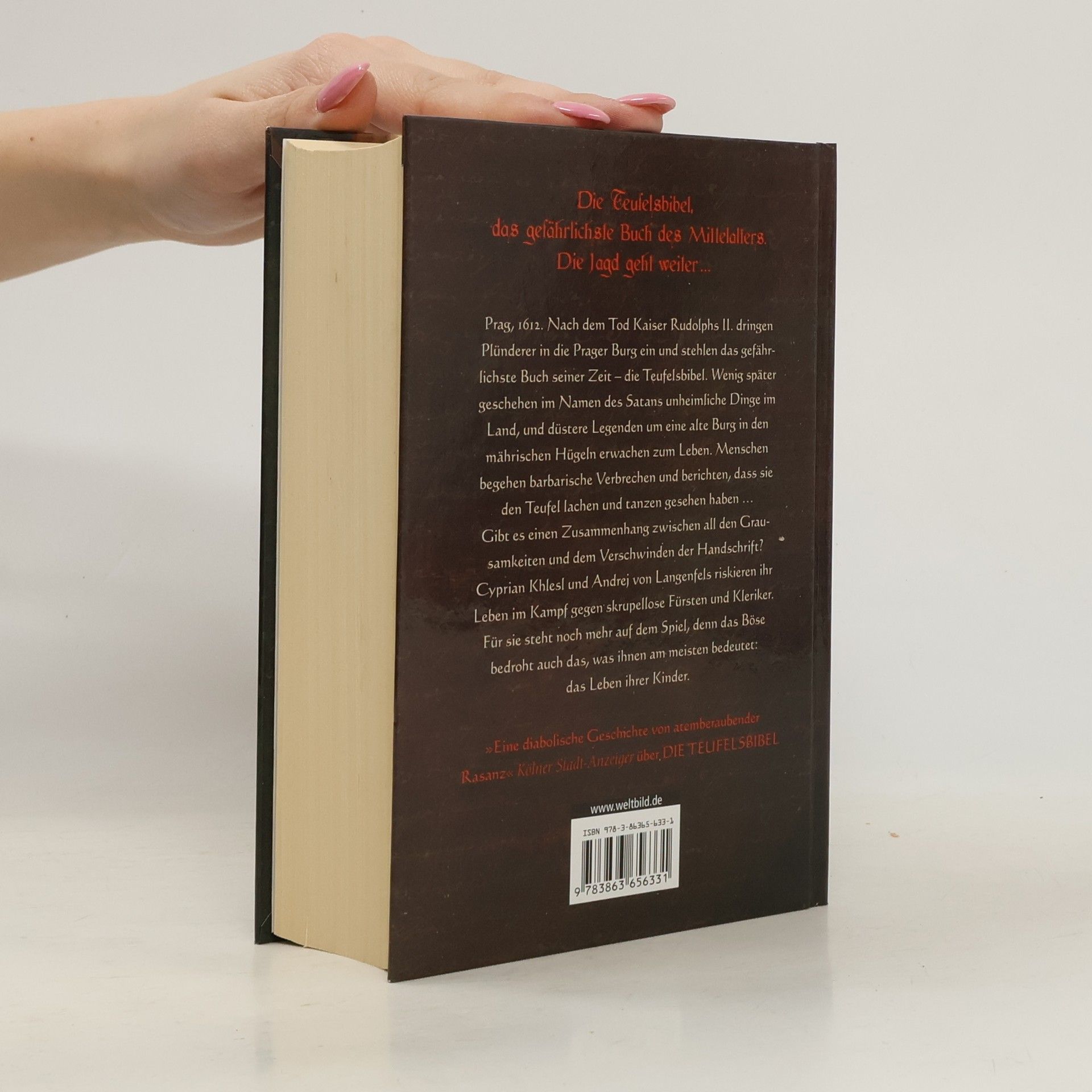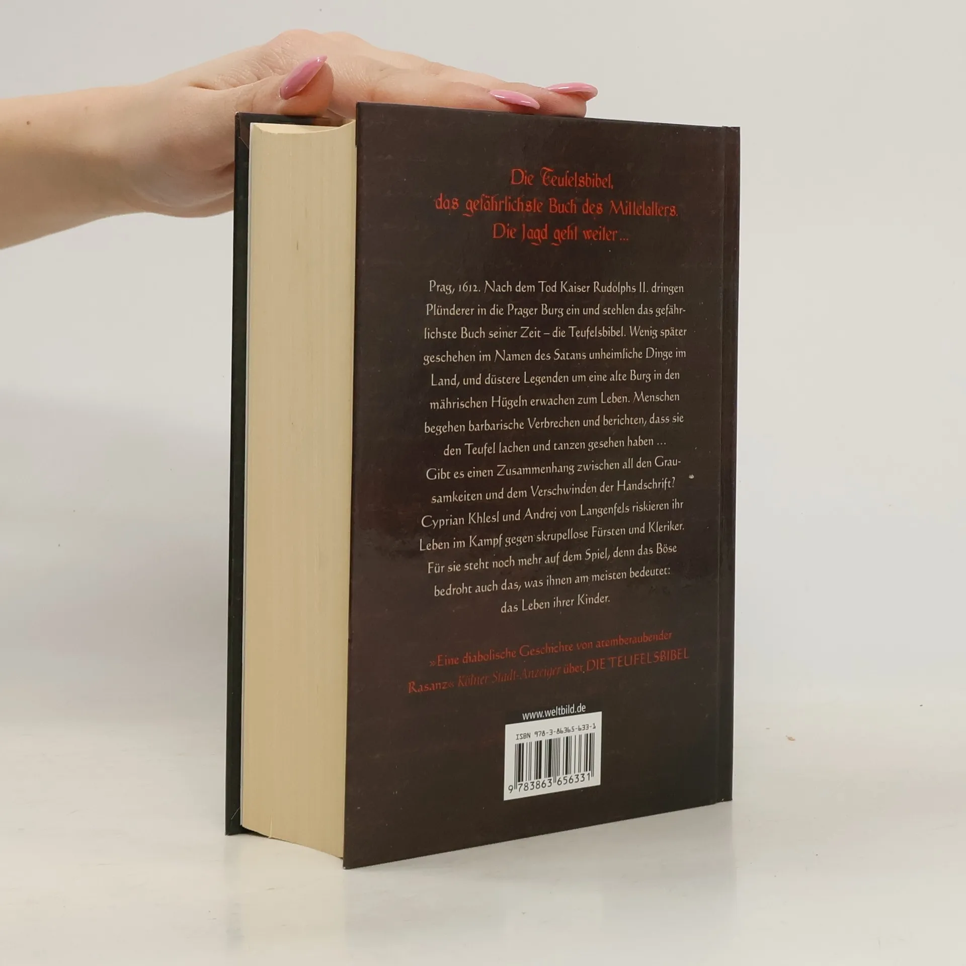 Böhmen 1572. In einem halb verfallenen Kloster wird der achtjährige Andrej Zeuge eines schrecklichen Blutbads: Zehn Menschen, darunter Andrejs Eltern, werden von einem rasenden Mönch brutal ermordet. Eine der Frauen bringt sterbend ein Kind zur Welt. Der Prior befiehlt, auch den Säugling zu töten - denn es gilt, alle Spuren zu verwischen, die irgendjemanden in das abgelegene Kloster führen könnten. Andrej kann fliehen und nimmt eines der am besten gehüteten Geheimnisse der Kirche mit sich, das die verschwiegene Mönchsgesellschaft um jeden Preis zu schützen geschworen hat: In dem Kloster wird ein Buch versteckt, das drei Päpsten das Leben kosten und die Macht haben soll, das Ende der Welt einzuläuten - der Codex Gigas, die Teufelsbibel, ein Kompendium des Bösen. Sieben schwarze Mönche behüten die große Handschrift und töten jeden, der zuviel darüber weiß. Doch das Wissen um das Buch des Teufels ist das einzige Erbe, das Andrej von seinem Vater geblieben ist ...