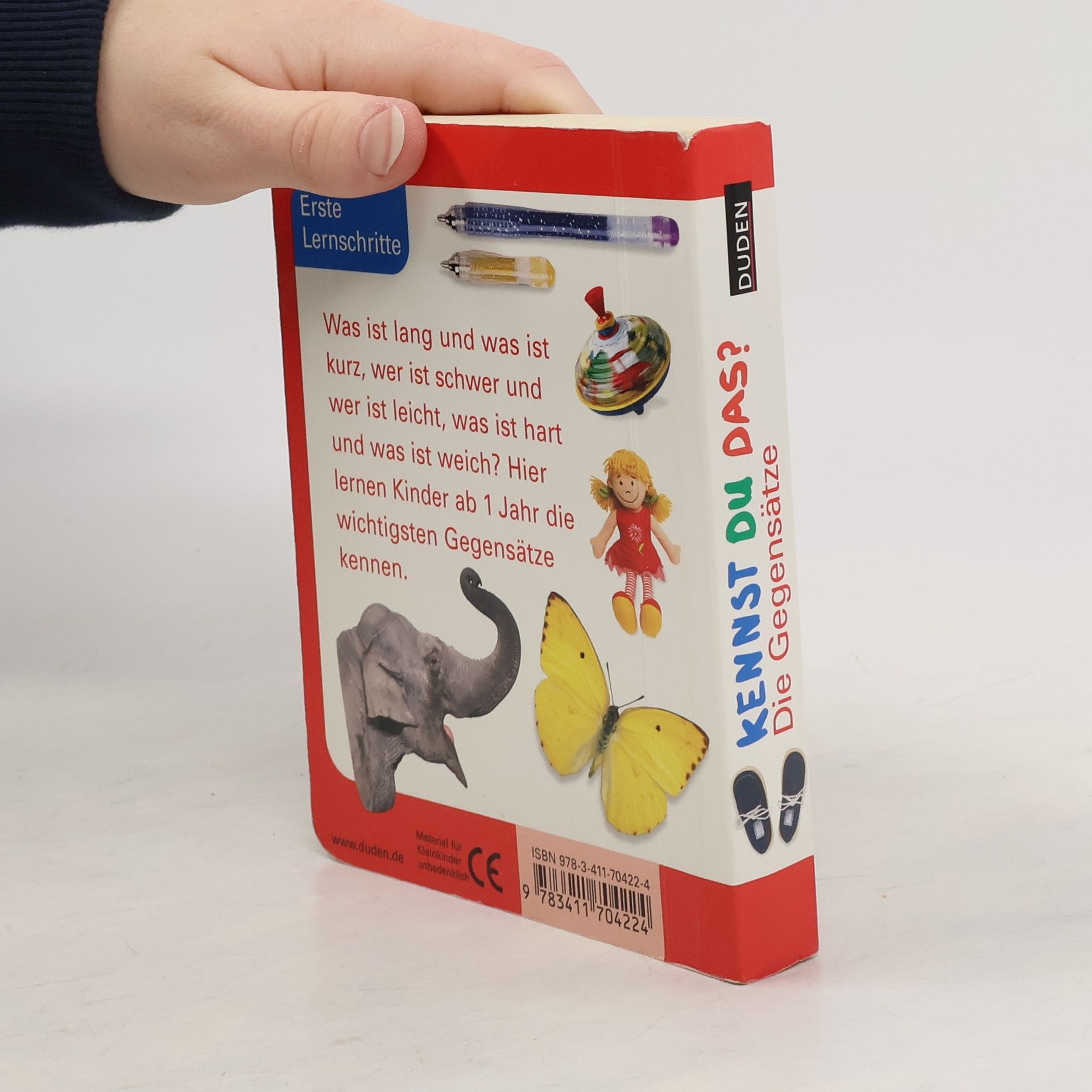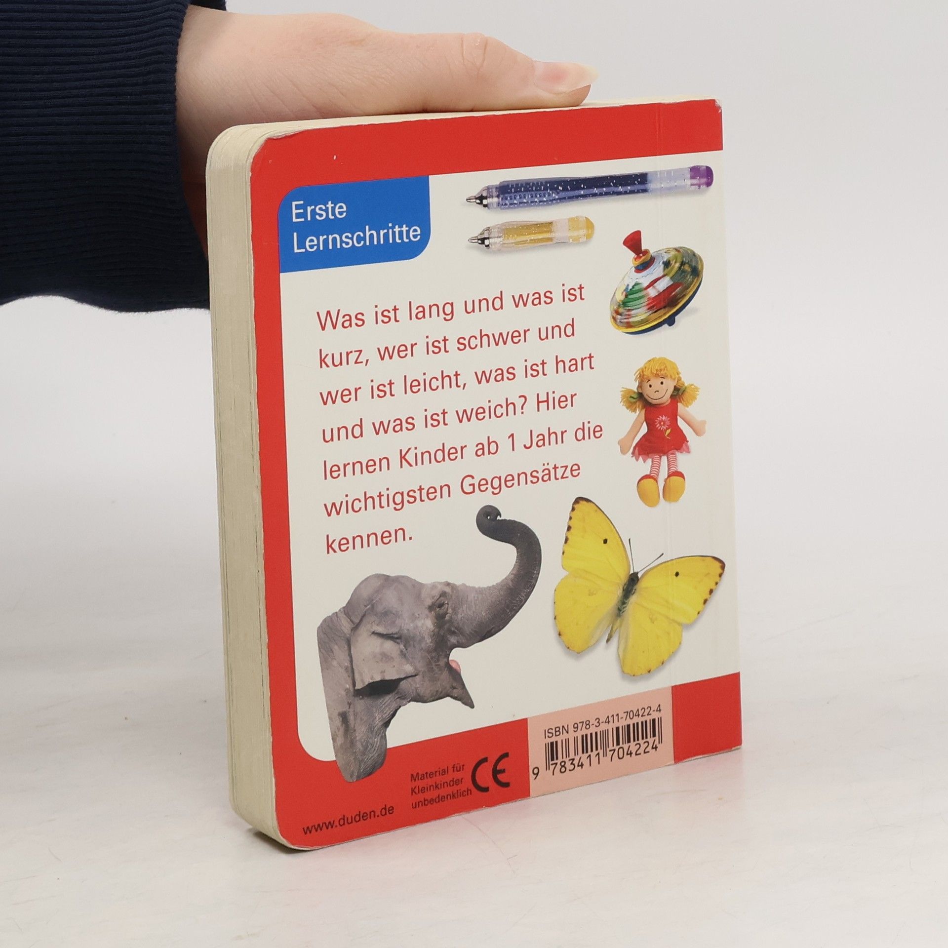 Was ist lang und was ist kurz, wer ist schwer und wer ist leicht, was ist hart und was ist weich? Hier lernen Kinder ab 1 Jahr die wichtigsten Gegensätze kennen.