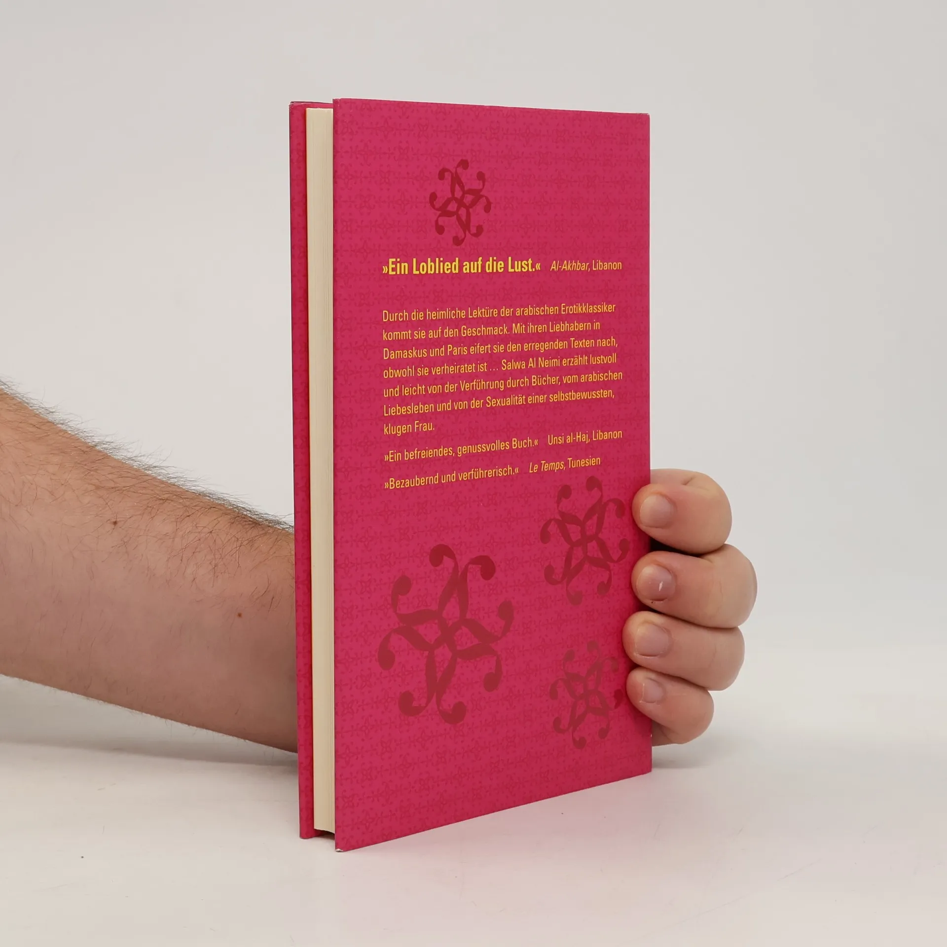 Durch die heimliche Lektüre der arabischen Erotikklassiker kommt sie auf den Geschmack. Mit ihren Liebhabern in Damaskus und Paris eifert sie den erregenden Texten nach, obwohl sie verheiratet ist. Ein Spiel nicht nur mit dem Feuer, sondern auch mit dem Tod! Denn auf Ehebruch steht nach islamischem Recht die Todesstrafe. Salwa Al Neimi erzählt offen, lustvoll und sinnlich von der Verführung durch Bücher, vom arabischen Liebesleben und von der Sexualität einer selbstbewussten, klugen Frau.