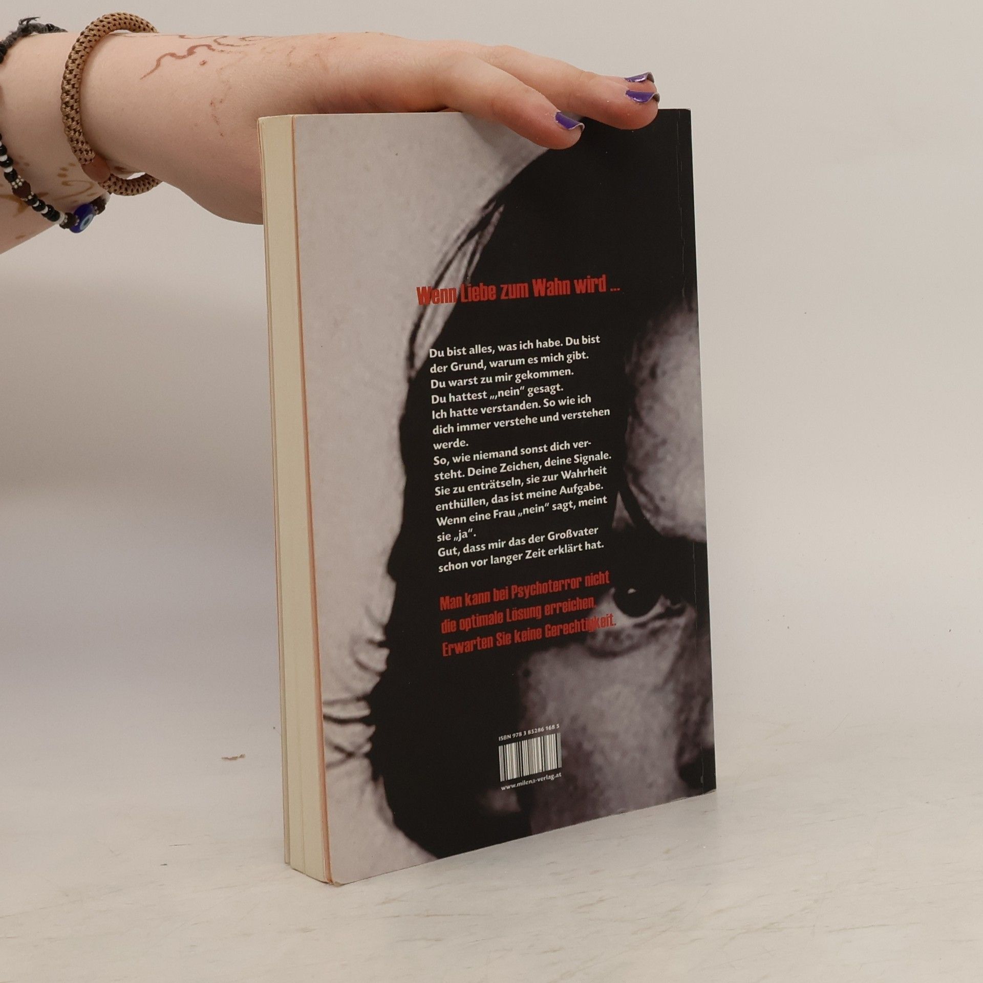 Selma Seiler ist Ärztin und endlich selbständig. Voll Stolz, endlich ihr Lebensziel verwirklichen zu können, bezieht sie eine neue Wohnung mit angeschlossener Praxis. Harrlich, ihr freundlicher Nachbar, ist davon überzeugt, dass er immer schon auf Selma gewartet hat, sie ist der Grund, warum es ihn gibt. Er liebt sie vom ersten Augenblick an. Selma, die von Harrlichs Zuneigung keine Ahnung hat, muss nach und nach erkennen, dass er sie gezielt verfolgt: mit Blumen, Geschenken, Telefonaten, heimlichen Fahrten mit ihrem Auto. Er dringt in ihre Wohnung ein, in ihr Leben und in ihre Psyche. Selma weiß sich nicht mehr zu helfen. Nach dem Tod seines Großvaters, seiner einzigen Bezugsperson, geraten seine krankhaften Gewaltfantasien außer Kontrolle ... „Selmas Zeichen“ ist ein spannender, ungewöhnlicher Psychothriller, der sich mit einem ebenso brisanten, wie aktuellen Thema beschäftigt: Stalking. Stilistisch brillant spannt die Autorin den Text zwischen Verfolgter und Verfolger auf. Die
