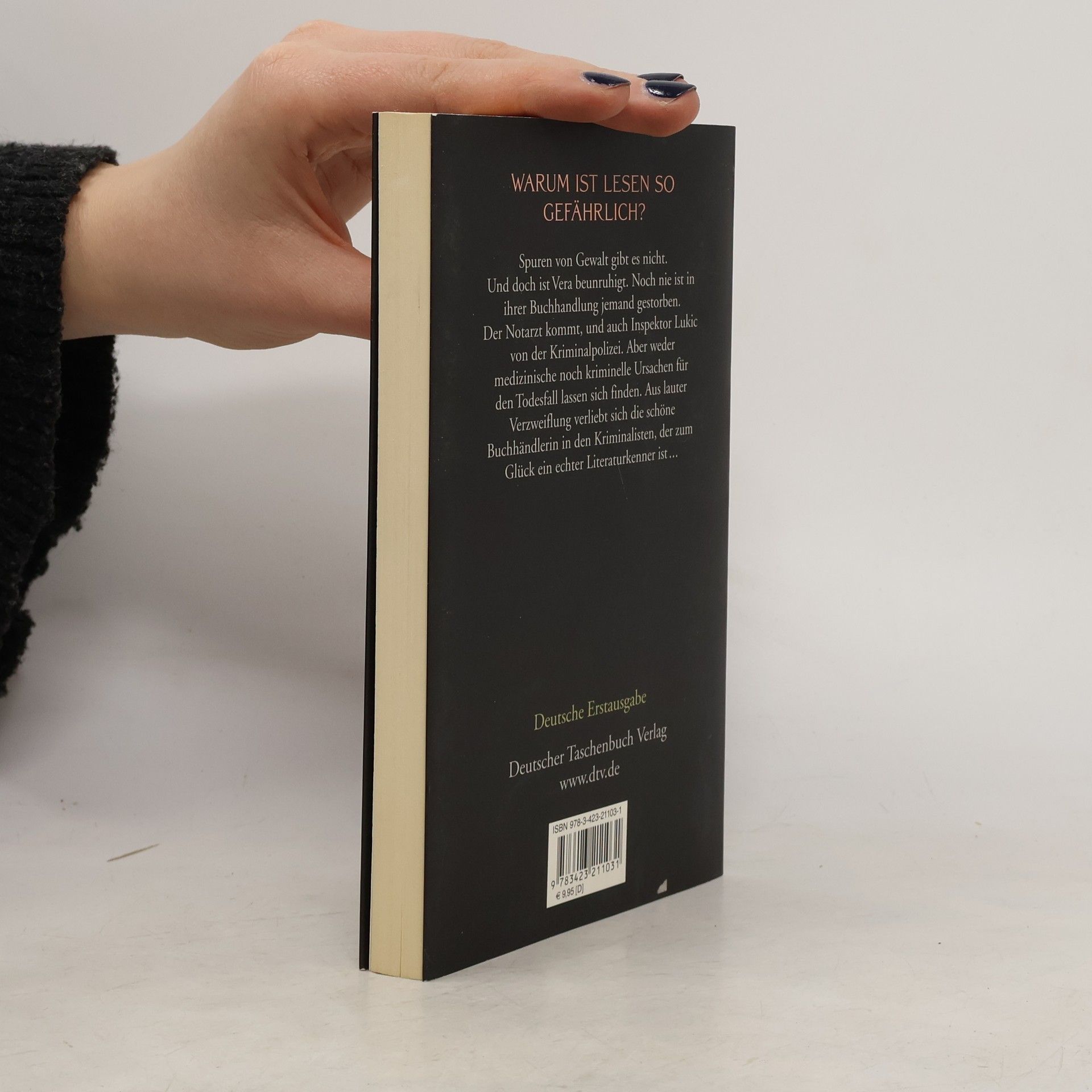 Warum ist Lesen so schrecklich gefährlich? Spuren von Gewalt gibt es nicht. Und doch ist Vera Gavrilovic äußerst beunruhigt. Noch nie ist in ihrer Buchhandlung jemand gestorben. Der Notarzt kommt, und auch ein Inspektor der Kriminalpolizei. Die Untersuchung ergibt gar nichts. Der Tote ist einfach beim Lesen gestorben. Weder medizinische noch kriminelle Ursachen lassen sich finden. Aber bald darauf liegt wieder jemand tot in der Buchhandlung. Aus lauter Verzweiflung verliebt sich die schöne Buchhändlerin in den Kriminalisten, der ein echter Literaturkenner ist. Aber die Serie von Todesfällen in der Buchhandlung „Papyrus“ reißt einfach nicht ab. Hat der Geheimdienst etwas damit zu tun? Steckt eine Sekte dahinter? Und was führt der Besitzer des Tee-Salons im Schilde, wo Vera und Lukic sich treffen? Ein spannender, postmoderner Thriller von einem Meister des schwarzen Humors.