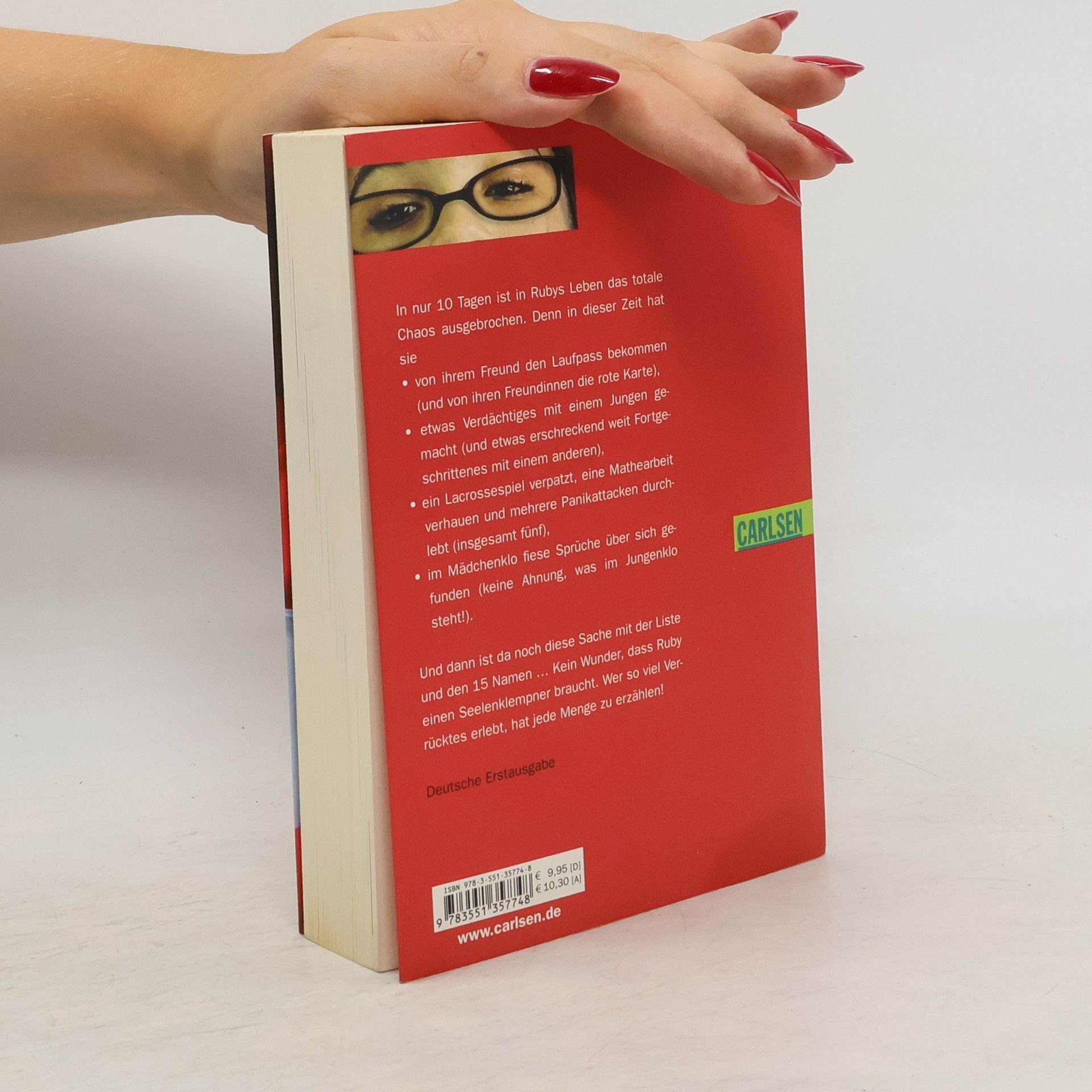 In nur 10 Tagen ist in Rubys Leben das totale Chaos ausgebrochen. Denn in dieser Zeit hat sie: von ihrem Freund den Laufpass bekommen (und von ihren Freundinnen die rote Karte), etwas Verdächtiges mit einem Jungen gemacht (und etwas erschreckend weit Fortgeschrittenes mit einem anderen), ein Lacrossespiel verpatzt, eine Mathearbeit verhauen und mehrere Panikattacken durchlebt (insgesamt fünf) und außerdem im Mädchenklo fiese Sprüche über sich gefunden (keine Ahnung, was im Jungenklo steht!). Und dann ist da noch diese Sache mit der Liste und den 15 Namen ... Kein Wunder, dass Ruby einen Seelenklempner braucht. Wer so viel Verrücktes erlebt, hat jede Menge zu erzählen! --- Ruby ist oft lustig, manchmal panisch, ein bisschen verrückt und ein bisschen naiv - also eine ganz normale Fünfzehnjährige, die gerne Listen schreibt, Fußnoten anhängt und mit Witz und Ironie von ihrem „Jungs-Debakel“ erzählt.
