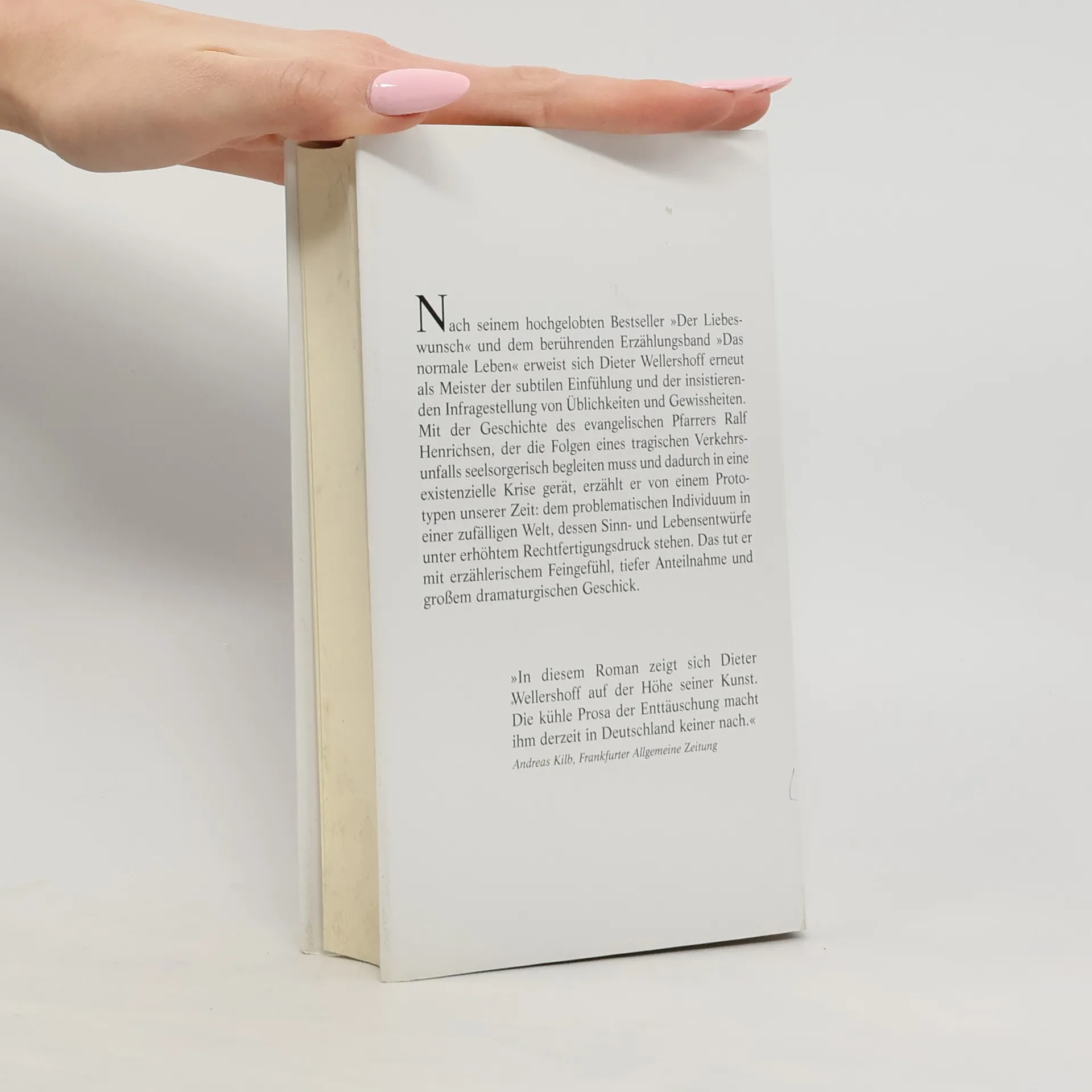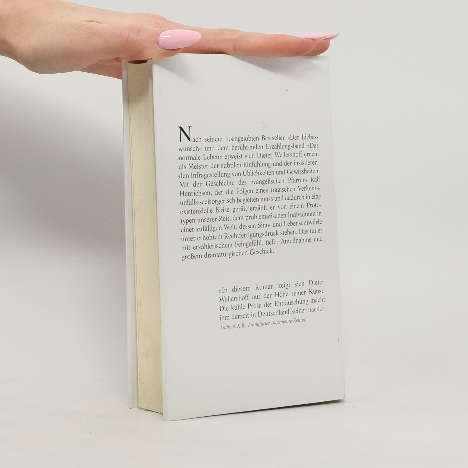 Mit seinem neuen Roman erweist sich Dieter Wellershoff erneut als Meister der subtilen Einfühlung und der insistierenden Infragestellung von Üblichkeiten und Gewissheiten. Mit der Geschichte des evangelischen Pfarrers Ralf Henrichsen, der die Folgen eines tragischen Verkehrsunfalls seelsorgerisch begleiten muss und dadurch in eine existentielle Krise gerät, erzählt er von einem Prototypen unserer Zeit: dem problematischen Individuum in einer zufälligen Welt, dessen Sinn- und Lebensentwürfe unter erhöhtem Rechtfertigungsdruck stehen. Der Roman beginnt wie ein Krimi und entwickelt sich zu einem figurenreichen Gesellschaftsdrama. Hauptfigur ist ein junger Landpfarrer, der eines Nachts zu einem Unfallort gerufen wird. Ein Auto ist von der Straße abgekommen und in einen See gestürzt. Der Fahrer hat sich gerettet, seine Frau und sein Sohn werden leblos geborgen. Wie das geschehen konnte, ist unklar. Schon bald nimmt das angebliche Unglück unheimliche Züge an. Der Pfarrer hält trotzdem an der Unschuldsvermutung fest und bringt fast alle Gemeindemitglieder gegen sich auf. Dieter Wellershoff erzählt mit ausgeprägtem Gespür für Stimmungen und Gefühle, wie ein Mann, der in der Gewissheit einer sinnstiftenden Ordnung gelebt hat, an Grenzen gerät – seine eigenen und die einer Institution, deren Anspruch es ist, Orientierung zu bieten und Halt zu gewähren.