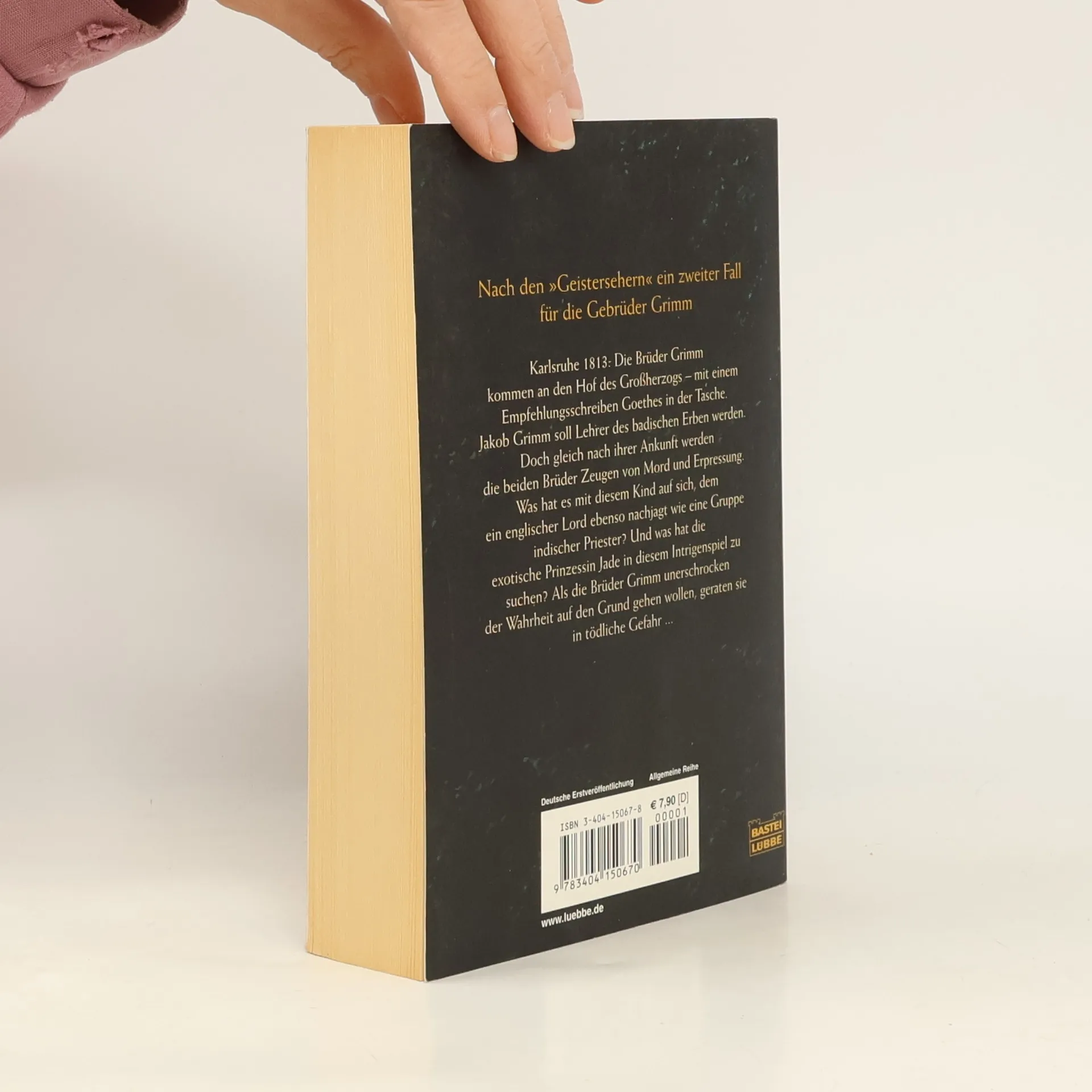 Januar 1813. Am badischen Hof in Karlsruhe geraten die Brüder Grimm in eine bizarre Intrige. Eine Prinzessin aus Indien macht Jagd auf den neugeborenen Sohn des Herzogs – und die Grimms werden Zeugen von Mord und Erpressung. Dezember 1812. Wie ein Flüchtiger reist der vor Moskau geschlagene Napoleon durch Europa. In tiefer Nacht macht er in Weimar Station und sucht Goethe mit einem dringenden Anliegen auf … Wenige Tage später reisen die Brüder Grimm an den Hof zu Karlsruhe – mit einer Empfehlung Goethes in der Tasche. Der Herzog sucht einen Lehrer für sein neugeborenes Kind. Doch in Karlsruhe stoßen sie bald auf schaurige Warnungen. Wer drängt sie, von ihrem Auftrag abzulassen? Was hat es mit dem herzoglichen Sohn auf sich? Als die Brüder der Wahrheit auf den Grund gehen wollen, geraten sie selbst in tödliche Gefahr.