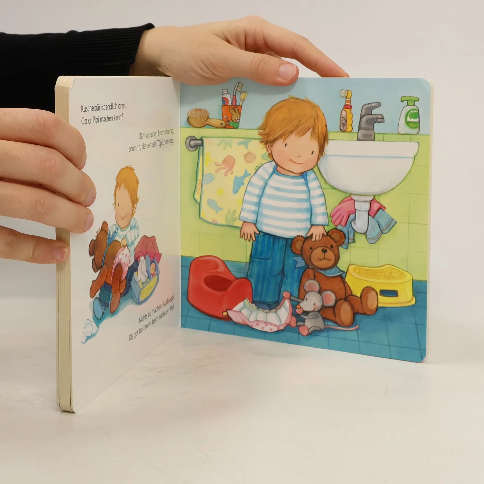 Mit dieser ersten "Töpfchen-Geschichte" können sich Kinder humorvoll und unverkrampft auf das wichtige Thema einlassen: Paula hat von Mama ein Töpfchen geschenkt bekommen und lässt nun all ihre Stofftiere antreten, um das erste Mal das Geschäft darauf zu verrichten. Dass sie alle keinen Erfolg haben, nimmt Paula leicht und tröstet sie: beim nächsten Mal klappt's ganz bestimmt! Und zeigt ihnen schließlich selbst, wie's geht ...