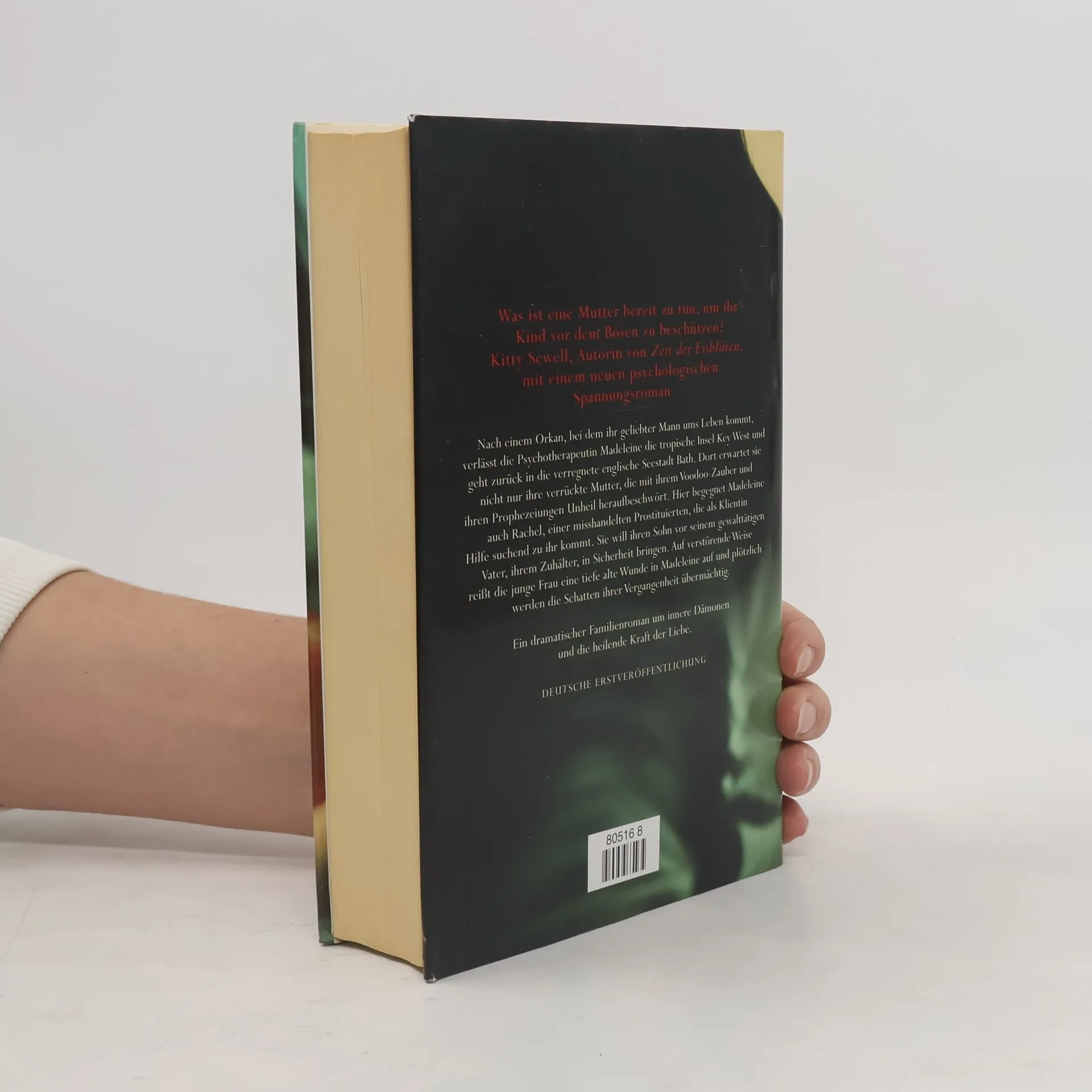 Was ist eine Mutter bereit zu tun, um ihr Kind zu beschützen? Madeleine Frank hat im Leben viele Stürme überstanden. Ihr Vater ist ein ebenso genialer wie egozentrischer Maler, ihre Mutter eine Zauberpriesterin aus Kuba. Ihr Mann ist auf den Florida Keys bei einem Orkan ums Leben gekommen. Nun ist Madeleine als Psychotherapeutin und Malerin in die verregnete englische Seestadt Bath zurückgekehrt, wo sie einen Teil ihrer Jugend verbracht hat. Madeleines geregelter Alltag gerät ins Wanken, als Rachel, eine misshandelte Prostituierte, Hilfe suchend in ihre Praxis kommt. Sie will ihren Sohn vor seinem gewalttätigen Vater, ihrem Zuhälter, in Sicherheit bringen. Als Madeleine Rachels Geburtsdatum erfährt, kommt ihr ein unglaublicher Verdacht. Sie selbst hatte als junges Mädchen ein Kind, das sie zur Adoption freigegeben hatte. Ist Rachel ihre eigene Tochter?