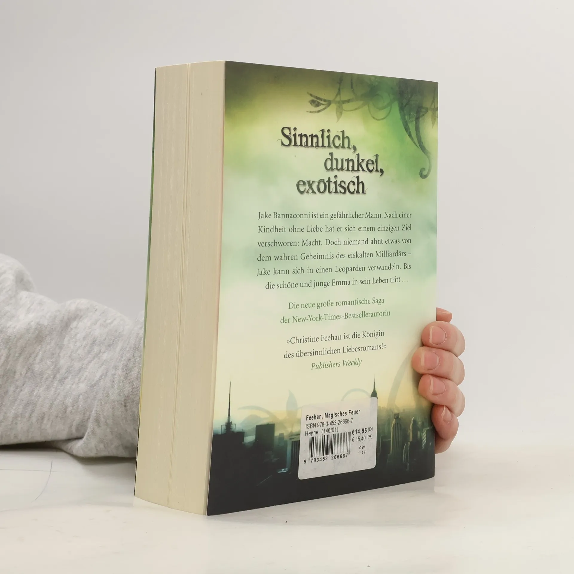 Tauchen Sie ein in die faszinierende Welt der Leopardenmenschen! Nach »Wilde Magie« legt die internationale Bestsellerautorin Christine Feehan ihr neues Meisterwerk vor und entführt ihre Leser in ein leidenschaftliches Abenteuer um die Gestaltwandler, die sich – halb Mensch, halb Tier – in gefährliche Raubtiere verwandeln können. Einer von ihnen, Jake, nach außen hin ein eiskalter Geschäftsmann, trifft in einem schicksalhaften Augenblick auf die schöne Emma. Scheinbar haben er und die einfühlsame junge Frau nichts gemeinsam – doch auch Emma hütet ein Geheimnis ...Der Milliardär Jake Bannaconni hat eine schwere Kindheit hinter sich: Nachdem er die Erwartungen seiner grausamen Eltern, seine magischen Fähigkeiten zu nutzen, nicht erfüllen konnte, vereinsamte er zunehmend. Was seine Eltern jedoch nicht wissen – Jake verbirgt seine gestaltwandlerische Gabe bewusst vor ihnen. Mit seiner Volljährigkeit tritt er das Erbe seines Großvaters an und wird zu einem äußerst erfolgreichen, aber auch skrupellosen Geschäftsmann. Er hat sein Leben scheinbar im Griff, bis es zu einem dramatischen Autounfall kommt und er der schönen Emma begegnet. Er verfällt der jungen Witwe und öffnet zum ersten Mal in seinem Leben einer anderen Person sein Herz. Trotz ihrer ungleichen Beziehung entbrennt eine glühende Leidenschaft, die sowohl Emma als auch Jake vor eine schwere Wahl stellt.