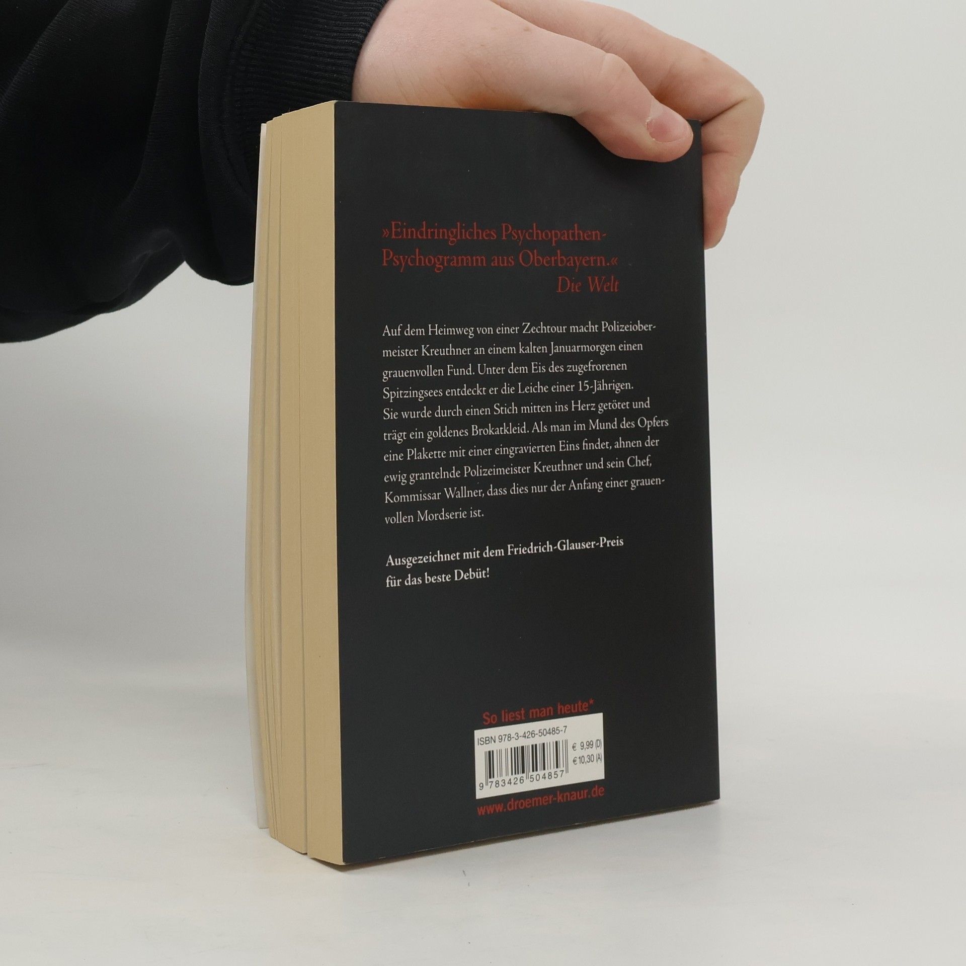 Auf dem Heimweg von einer Zechtour macht Polizeiobermeister Kreuthner an einem eisigen Januarmorgen einen grauenvollen Fund. Unter dem Eis des zugefrorenen Spitzingsees entdeckt er die Leiche einer 15-Jährigen. Sie wurde durch einen Stich mitten ins Herz getötet und trägt ein goldenes Brokatkleid. Als man im Mund des Opfers eine Plakette mit einer eingravierten Eins findet, ahnen der ewig grantelnde Polizeiobermeister Kreuthner und sein Chef, Kommissar Wallner, dass dies nur der Anfang einer grauenvollen Mordserie ist. Der mit dem Friedrich-Glauser-Preis ausgezeichnete Autor Andreas Föhr blickt mit seinem außergewöhnlichen Debütroman in mörderisch kalte Abgründe – mitten im idyllischen Oberbayern.
