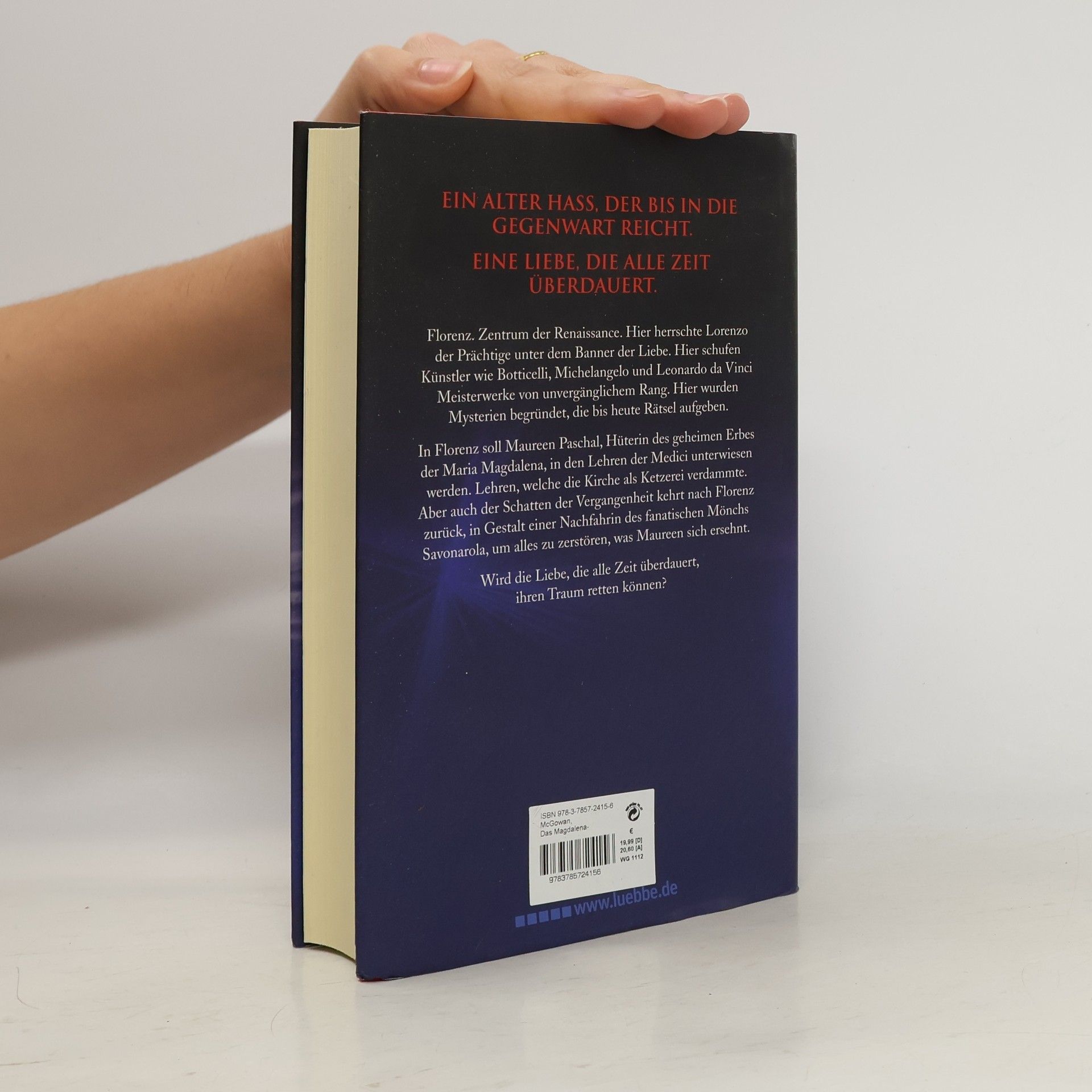 Florenz. Zentrum der Renaissance. Hier herrschte Lorenzo der Prächtige unter dem Banner der Liebe. Hier schufen Künstler wie Botticelli, Michelangelo und Leonardo da Vinci Meisterwerke von unvergänglichem Rang. Hier wurden Mysterien begründet, die bis heute Rätsel aufgeben. In Florenz soll Maureen Paschal, Hüterin des geheimen Erbes der Maria Magdalena, in den Lehren der Medici unterwiesen werden. Lehren, welche die Kirche als Ketzerei verdammte. Aber auch der Schatten der Vergangenheit kehrt nach Florenz zurück, in Gestalt einer Nachfahrin des fanatischen Mönchs Savonarola, und bringt Maureen in tödliche Gefahr.