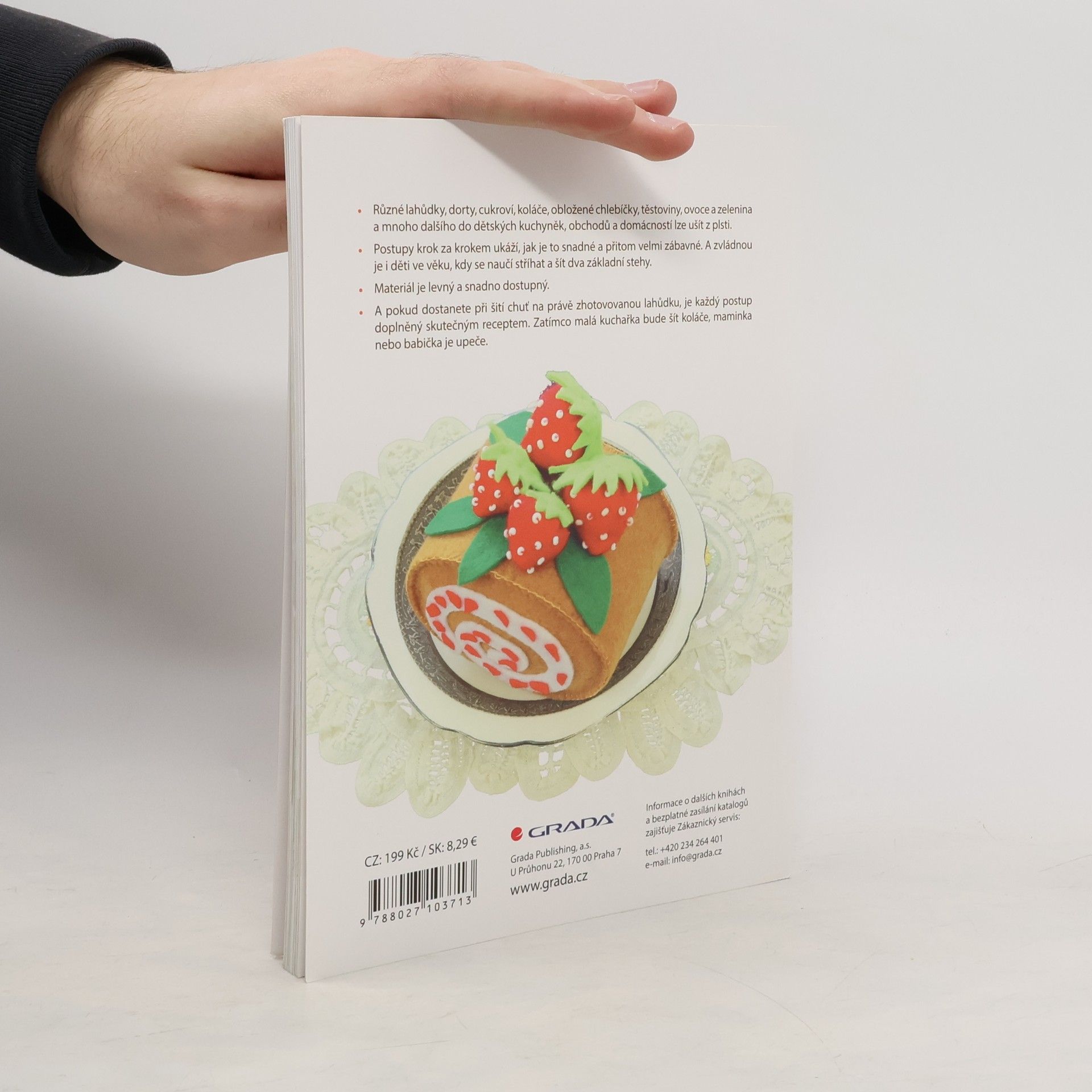 Různé lahůdky, dorty, cukroví, koláče, obložené chlebíčky, těstoviny, ovoce a zelenina a mnoho dalšího do dětských kuchyněk, obchodů a domácností lze snadno ušít z plsti. Postupy krok za krokem ukáží, jak je to snadné a přitom velmi zábavné. Postupy zvládnou děti ve věku, kdy se naučí stříhat a šít dva základní stehy. Materiál je levný a snadno dostupný. A pokud dostanete při šití chuť na právě zhotovovanou lahůdku, je každý postup doplněný skutečným receptem. Zatímco malá kuchařka bude šít koláče, maminka nebo babička je upeče.