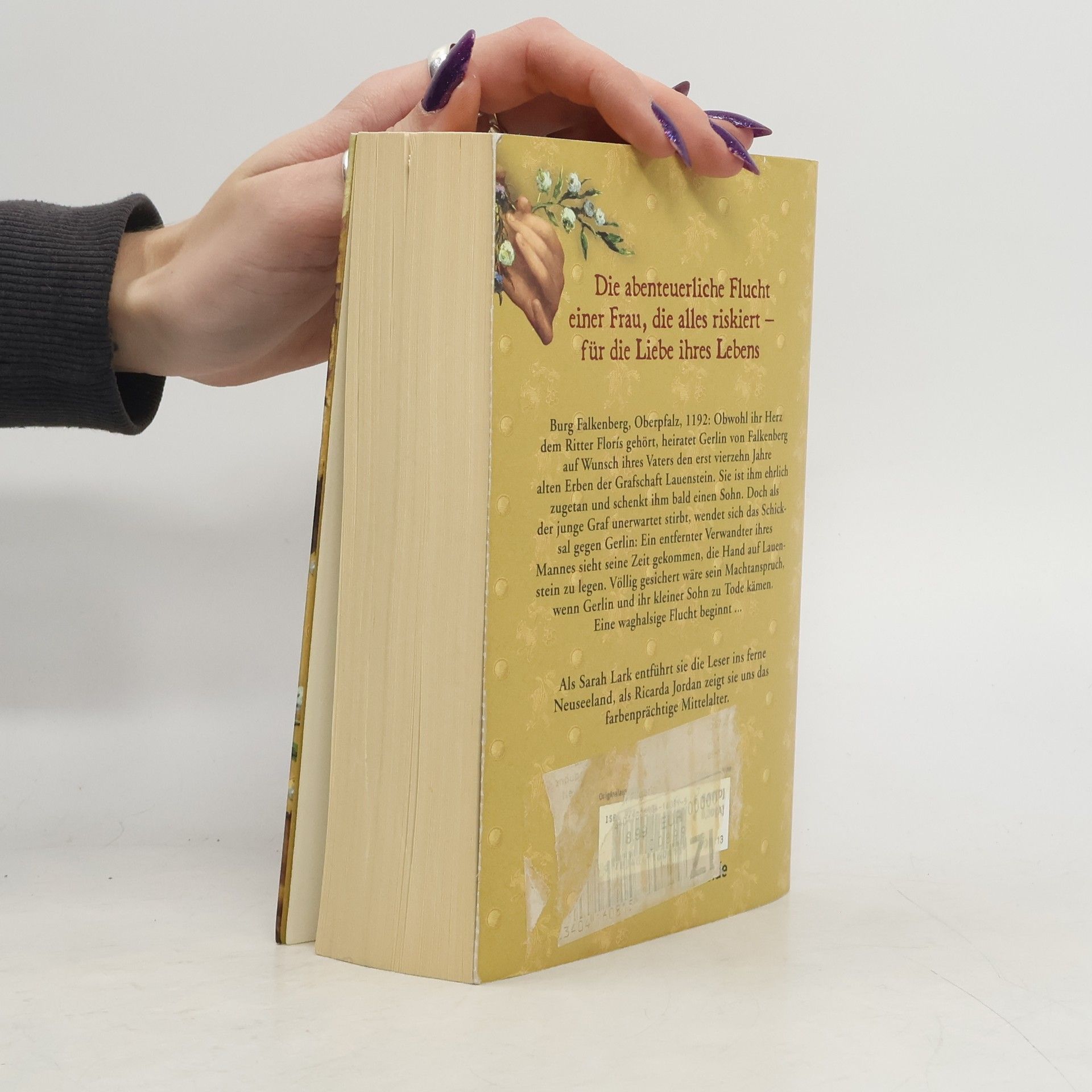 Burg Falkenberg, Oberpfalz, 1192: Obwohl ihr Herz dem Ritter Florís gehört, heiratet Gerlin von Falkenberg auf Wunsch ihres Vaters den erst vierzehn Jahre alten Erben der Grafschaft Lauenstein. Sie ist ihm ehrlich zugetan und schenkt ihm bald einen Sohn. Doch als der junge Graf unerwartet stirbt, wendet sich das Schicksal gegen Gerlin: Ein entfernter Verwandter ihres Mannes sieht seine Zeit gekommen, die Hand auf Lauenstein zu legen. Völlig gesichert wäre sein Machtanspruch, wenn Gerlin und ihr kleiner Sohn zu Tode kämen. Eine waghalsige Flucht beginnt ... Bestsellerautorin Sarah Lark schreibt als Ricarda Jordan.
