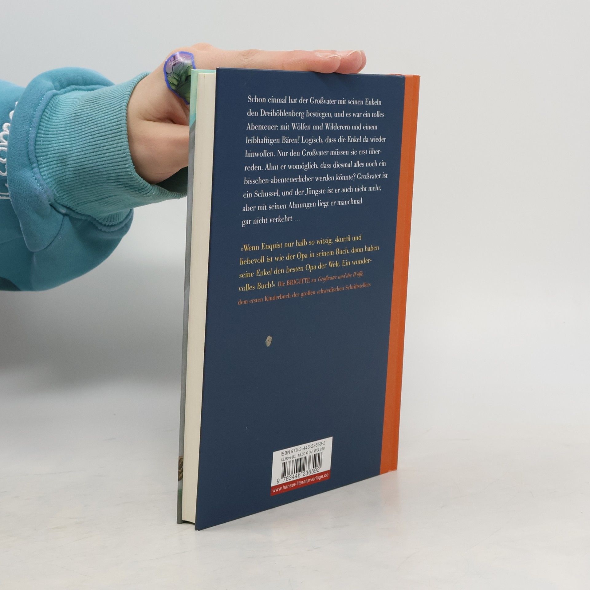 Ganz allein mit dem Großvater den Dreihöhlenberg besteigen, das finden die Enkel toll. Schon einmal hatten sie diese Bergtour begonnen, doch damals hatte sich der Großvater das Bein gebrochen, und sie sind nicht bis zur dritten Höhle ganz oben gekommen. Diesmal werden sie es schaffen! Doch erst entdecken sie ein verlassenes Zelt und eine geheimnisvolle Karte, in die jemand die Höhlen eingezeichnet hat. Was hat das zu bedeuten? Aus der geplanten Bergwanderung wird plötzlich ein gefährliches Abenteuer mit echten Schmugglern, Polizisten, Hubschraubern, Wölfen und einem bärenstarken Bären. Das neue Kinderbuch des Erfolgsautors aus Schweden - eine spannende Abenteuergeschichte.