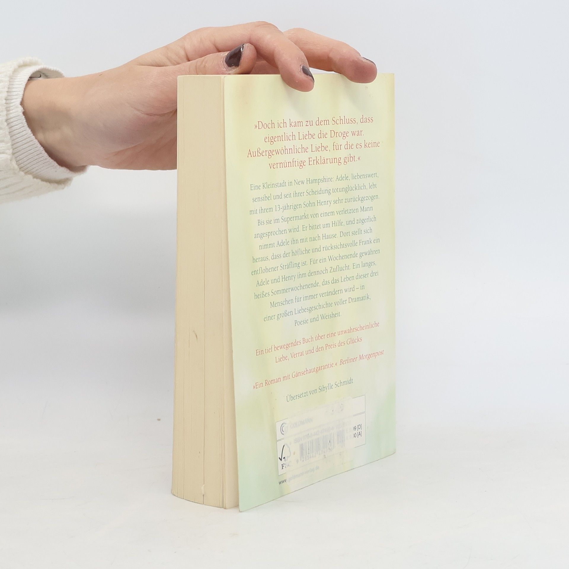 Ein tief bewegendes Buch über eine unwahrscheinliche Liebe, Verrat und den Preis des Glücks. Eine Kleinstadt in New Hampshire: Adele, liebenswert, sensibel und seit ihrer Scheidung todunglücklich, lebt mit ihrem 13-jährigen Sohn Henry sehr zurückgezogen in einem kleinen Haus. Bis Henry sie zu einem Einkaufstrip überredet, der ihrer beider Leben für immer verändern wird. Denn im Supermarkt wird Henry von einem verletzten Mann angesprochen. Er bittet um Hilfe, und Adele nimmt ihn mit nach Hause. Dort stellt sich heraus, dass der höfliche und rücksichtsvolle Frank ein entflohener Sträfling ist. Für ein Wochenende gewähren die beiden ihm Zuflucht. Und während Henry in Frank den lange vermissten Vaterersatz findet, entwickelt sich zwischen Frank und Adele eine zarte, innige Liebe. Eine Liebe, für die sie einen hohen Preis zahlen werden.