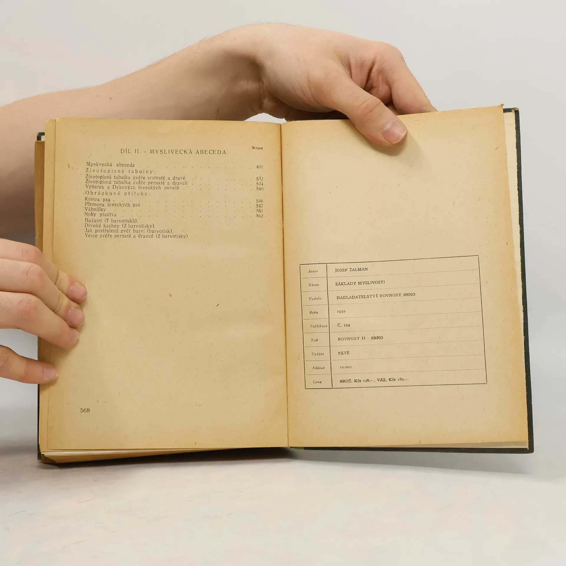 vše o myslivosti, doplněné mysliveckou abecedou. Na tituláku je r.1949, v tiráži 1950