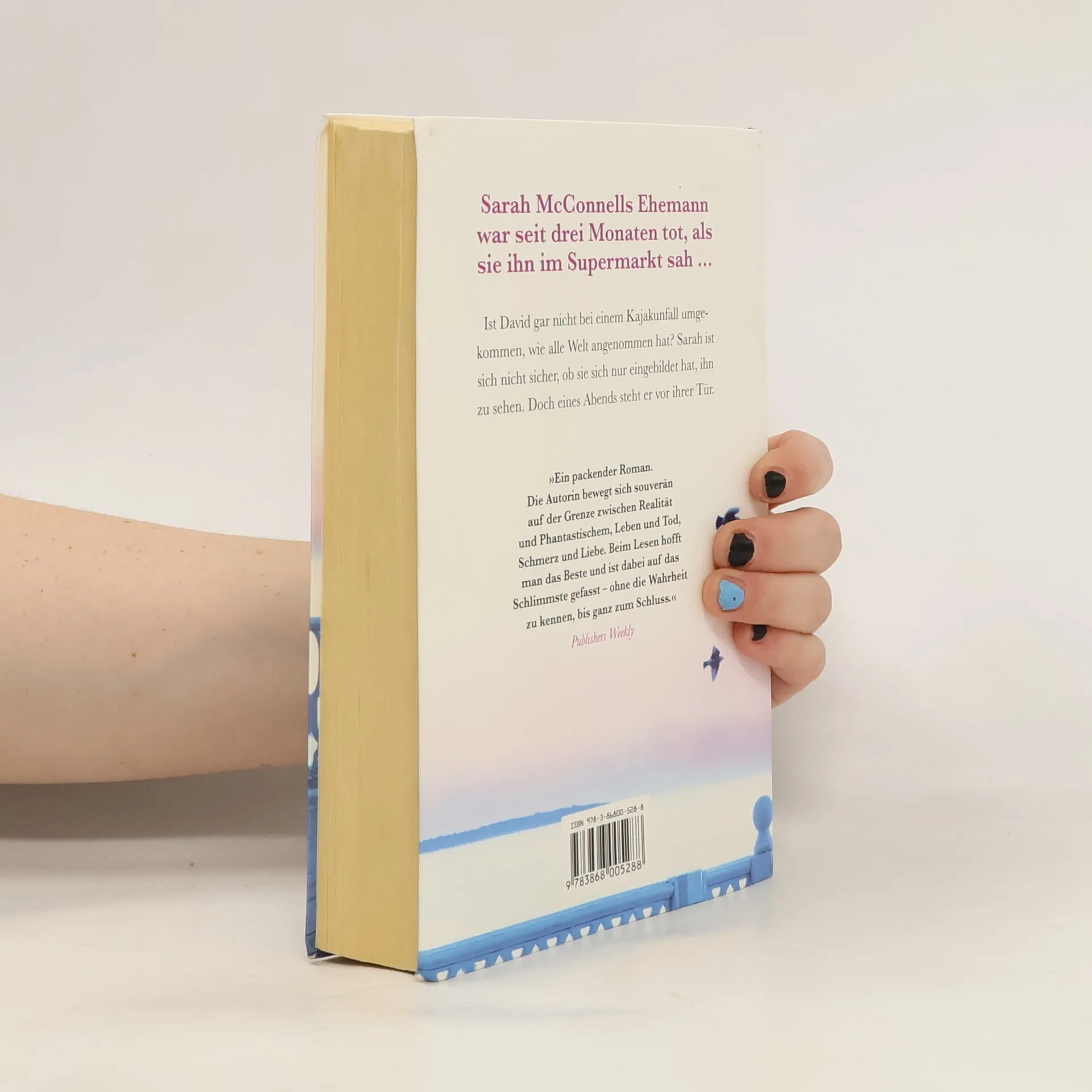 Der Bestseller jetzt auch in großer Schrift David ist beim Kajakfahren in einer Sturzflut umgekommen. Doch man hat nur das Boot gefunden, seine Leiche bleibt verschollen. Eines Tages glaubt Sarah, seine Witwe, David beim Einkaufen im Supermarkt zu sehen, später im Flur ihres Hauses und schließlich draußen vor dem Küchenfenster. Gaukelt ihre Fantasie ihr etwas vor? Oder ist es ein Geist, der ihr da erscheint? Dann klopft es – ausgerechnet an Halloween – an ihre Tür: Und ihr Mann steht davor! Sie lässt ihn herein und hört eine unglaubliche Geschichte.