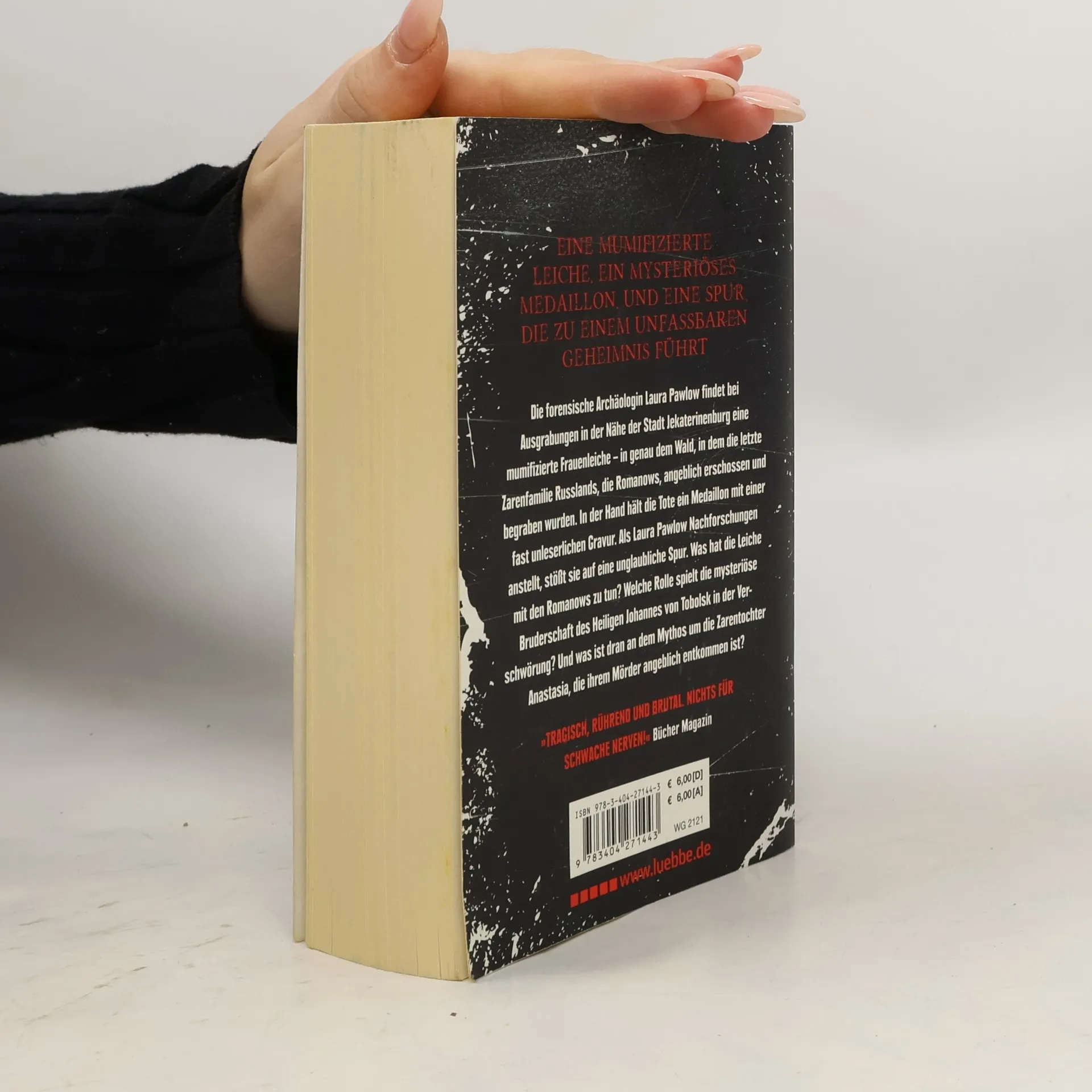 Russland, in der Nähe der Stadt Jekaterinburg: Die forensische Archäologin Laura Pawlow findet bei Ausgrabungen eine mumifizierte Frauenleiche. In der Hand hält die Tote ein Medaillon mit einer fast unleserlichen Gravur. Laura Pawlow stößt bei ihrer Untersuchung auf eine unglaubliche Spur. Ist es wirklich Zufall, dass die Leiche in demselben Wald gefunden wurde, in dem die Romanows, die Familie des letzten Zaren von Russland, angeblich erschossen und begraben wurden? Welche Rolle spielt die mysteriöse Bruderschaft des Heiligen Johannes von Tobolsk in der Verschwörung? Und was ist dran an dem Mythos um die Zarentochter Anastasia, die ihrem Mörder angeblich entkommen ist?