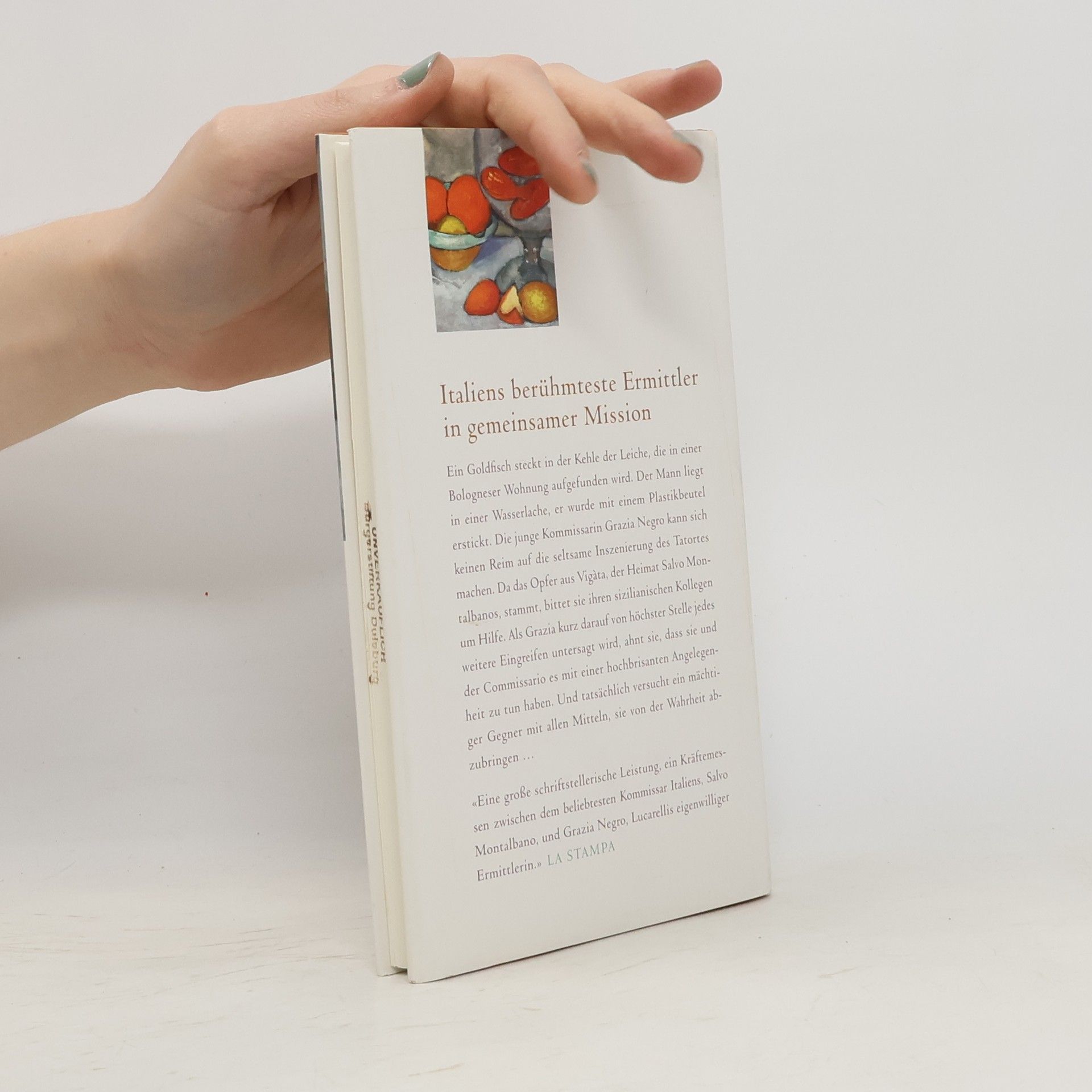 Italiens berühmteste Ermittlerin gemeinsamer MissionEin Goldfisch steckt in der Kehle der Leiche, die in einer Bologneser Wohnung aufgefunden wird. Der Mann liegt in einer Wasserlache, er wurde mit einem Plastikbeutel erstickt. Die junge Kommissarin Grazia Negro kann sich keinen Reim auf die seltsame Inszenierung des Tatortes machen. Da das Opfer aus Vigàta, der Heimat Salvo Montalbanos, stammt, bittet sie ihren sizilianischen Kollegen um Hilfe. Als Grazia kurz darauf von höchster Stelle jedes weitere Eingreifen untersagt wird, ahnt sie, dass sie und der Commissario es mit einer hochbrisanten Angelegenheit zu tun haben. Und tatsächlich versucht ein mächtiger Gegner mit allen Mitteln, sie von der Wahrheit abzubringen …«Eine große schriftstellerische Leistung, ein Kräftemessen zwischen dem beliebtesten Kommissar Italiens, Salvo Montalbano, und Grazia Negro, Lucarellis eigenwilliger Ermittlerin.» LA STAMPA