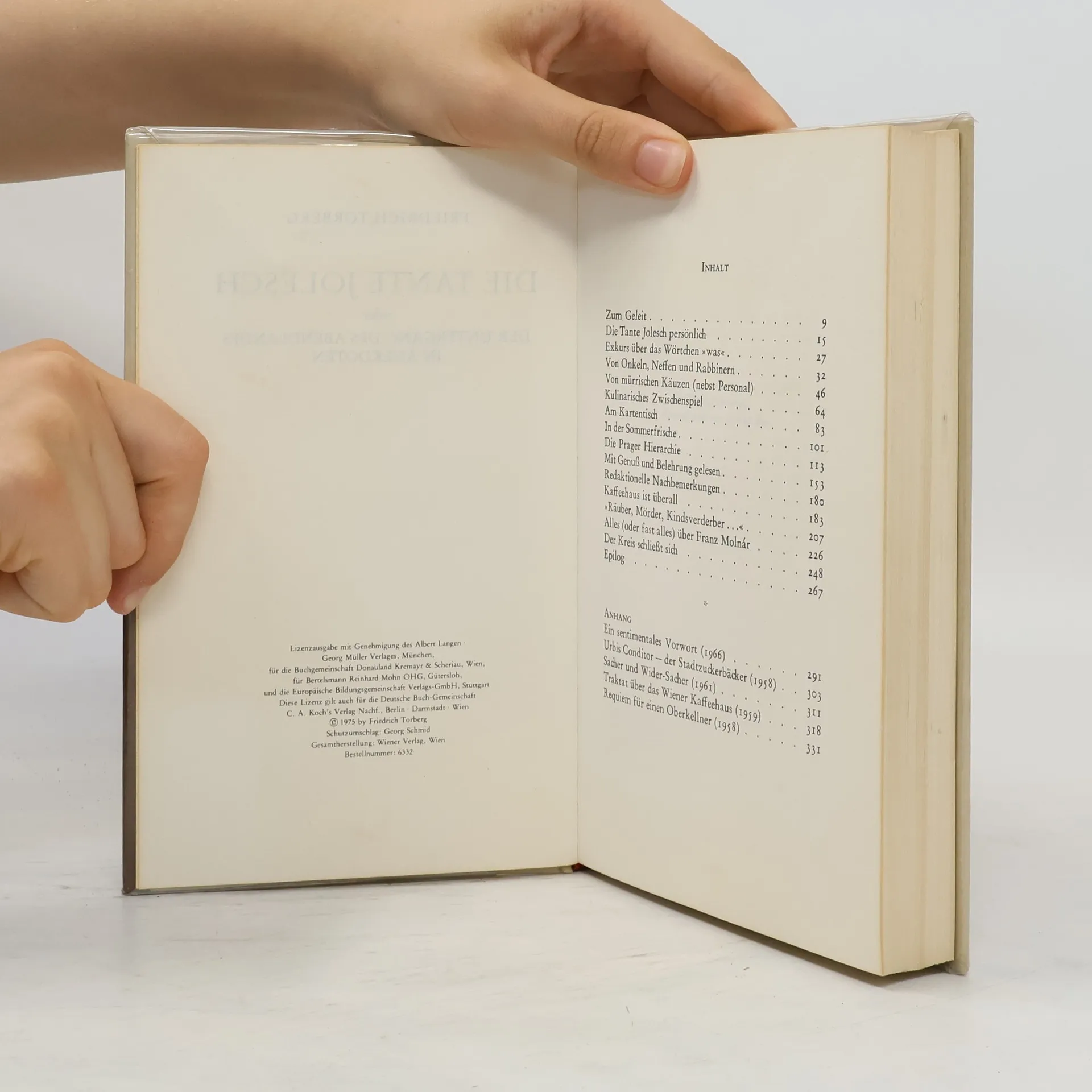 Friedrich Torberg war wohl einer der letzten, der aus eigener Erinnerung die Atmosphäre des ehemals habsburgischen Kulturkreises und die Welt der Boheme in Budapest, Prag und Wien so intensiv zu beschwören vermochte. Franz Molnár, Egon Erwin Kisch, Anton Kuh, Egon Friedell und Alfred Polgar – hier werden sie alle wieder lebendig. Aber mehr noch kommen die Unbekannten zu Wort: der zerstreute Religionslehrer Grün, der geistreiche Rechtsanwalt Sperber, die Redakteure des legendären ›Prager Tagblatts‹ und natürlich die Tante Jolesch, die den Lauf der Welt auf ihre Weise kommentierte.