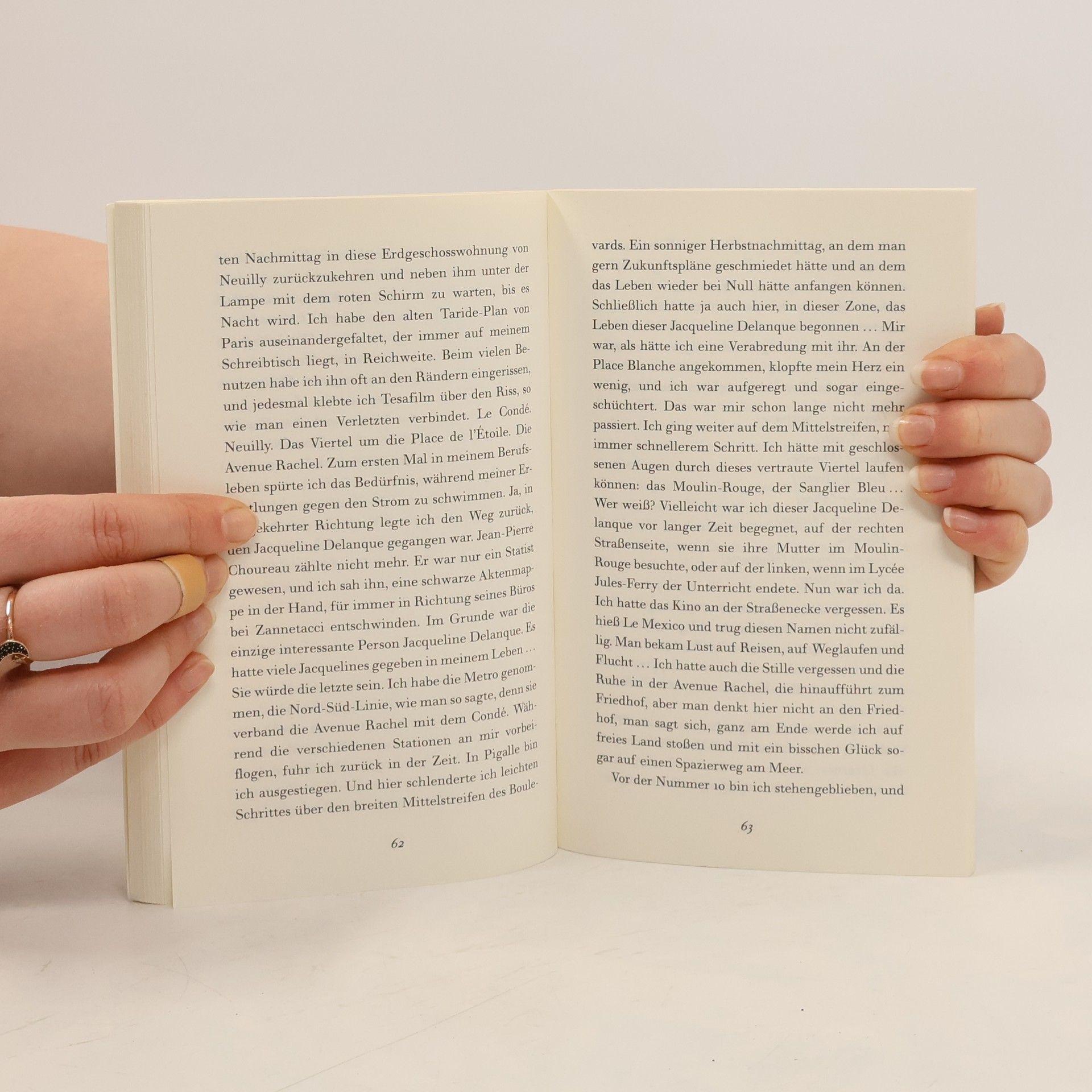 Im Paris der frühen Sechzigerjahre Schon als junges Mädchen ist Louki aus der Wohnung der Mutter, einer Platzanweiserin im Moulin Rouge, immer wieder weggelaufen. Den Vater hat sie nie gesehen. Ihren Mann, einen wohlsituierten Immobilienmakler, verließ sie ein Jahr nach der Heirat wieder. Sie verkehrt in einem esoterischen Zirkel, schnupft mit einer Freundin ab und zu ein bisschen »Schnee« und verliebt sich schließlich in den angehenden Schriftsteller Roland. Gemeinsam streifen sie tagelang durch die große Stadt. Im Café Le Condé, dem »Café der verlorenen Jugend« in Saint-Germain-des-Prés, glaubt Louki Zuflucht zu finden, während der Detektiv ihres Mannes schon ihre Spur aufgenommen hat. Mit wunderbarer Leichtigkeit erschafft Patrick Modiano, der große zeitgenössische Literat Frankreichs, eine unvergleichliche Atmosphäre, in der das Paris der frühen Sechzigerjahre wiederaufersteht.