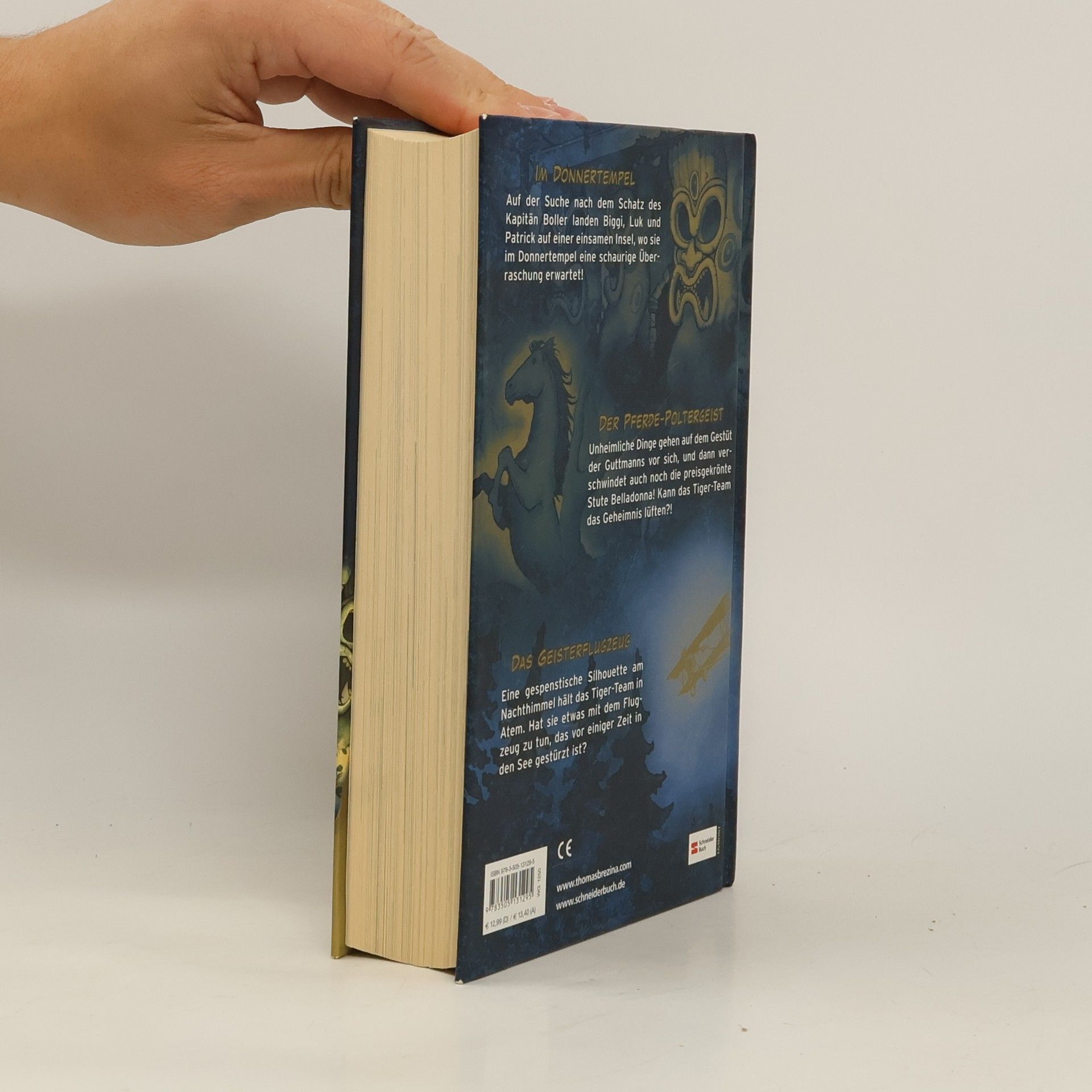 Im Donnertempel Auf der Suche nach dem Schatz des Kapitän Boller landen Biggi, Luk und Patrick auf einer einsamen Insel, wo sie im Donnertempel eine schaurige Überraschung erwartet! Der Pferde-Poltergeist Unheimliche Dinge gehen auf dem Gestüt der Guttmanns vor sich, und dann verschwindet auch noch die preisgekrönte Stute Belladonna! Kann das Tiger-Team das Geheimnis lüften?! Das Geisterflugzeug Eine gespenstische Silhouette am Nachthimmel hält das Tiger-Team in Atem. Hat es mit dem Flugzeug zu tun, das vor einiger Zeit in den See gestürzt ist?