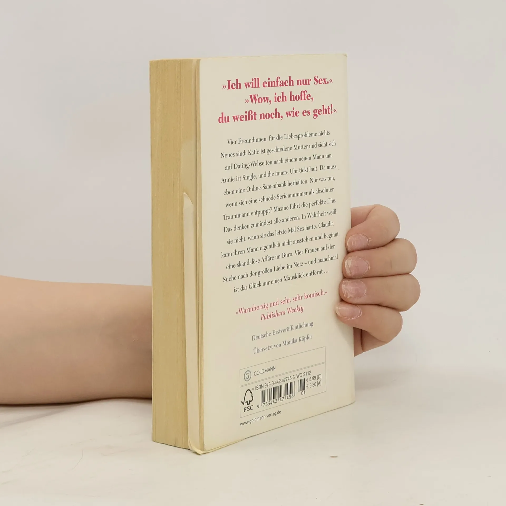 Wie "Sex and the City" - nur ohne überteuerte Schuhe, dafür mit Kindern und ungeeigneten Ehemännern. Vier Freundinnen suchen die Lösung ihrer Liebesprobleme im Internet: Katie ist geschiedene Mutter und sieht sich auf Dating-Webseiten nach einem neuen Mann um. Annie hat im Geiste schon mit Hochzeits- und Familienplanung begonnen, als sie von ihrem Freund sitzen gelassen wird. Da die Uhr tickt, muss eben die Online-Samenbank herhalten. Maxine führt die perfekte Ehe. Das denken zumindest alle anderen. In Wahrheit weiss sie nicht, wann sie das letzte Mal Sex hatte. Und Claudia kann ihren Mann eigentlich nicht ausstehen und beginnt daher eine skandalöse Affäre im Büro. Molly Shapiro hat Creative Writing an der Columbia University studiert und ist Gewinnerin des 'Willa Cather Fiction Prize'. Nach Lebensstationen in New York, San Francisco, Boston und Rom ist nun Kansas City, Missouri, ihr Zuhause, wo sie mit ihrem Mann und ihren zwei Kindern lebt.