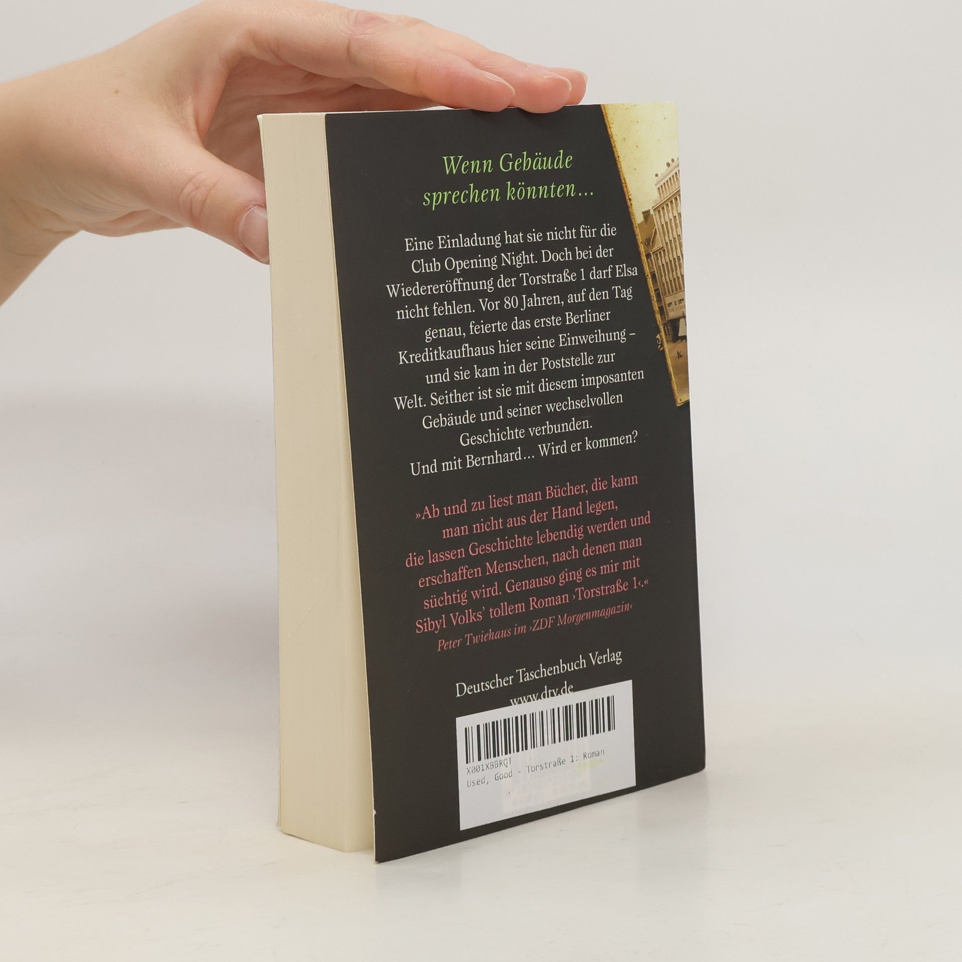 Ein Jahrhundert, zwei Familien und ein Haus im Herzen Berlins Berlin, Torstraße 1: Das imposante Gebäude steckt voller Geschichte – und für Elsa voll persönlicher Erinnerungen. Hier kam sie 1929 zur Eröffnung des Kaufhauses Jonass zur Welt, als uneheliches Kind der Verkäuferin Vicky. Hier begann die große, unmögliche Liebe zwischen Vicky und Harry Grünberg, dem Sohn der jüdischen Kaufhausbesitzer. Und Elsas tiefe Freundschaft zu Bernhard, dessen Vater das Haus mit gebaut hat. Sie erleben, wie Familie Grünberg vertrieben wird, die Hitlerjugend einzieht und nach dem Krieg das Institut für Marxismus-Leninismus. Trotz Krieg und geteilter Stadt bleiben Vicky und Harry, Elsa und Bernhard der Torstraße 1 und einander verbunden. Ein Gesellschaftsroman und eine Erzählung von Liebe und Freundschaft in wechselvollen Zeiten – ausgehend von der wahren Geschichte des Hauses Verfilmt als TV-Serie von den Produzenten von »Babylon Berlin«