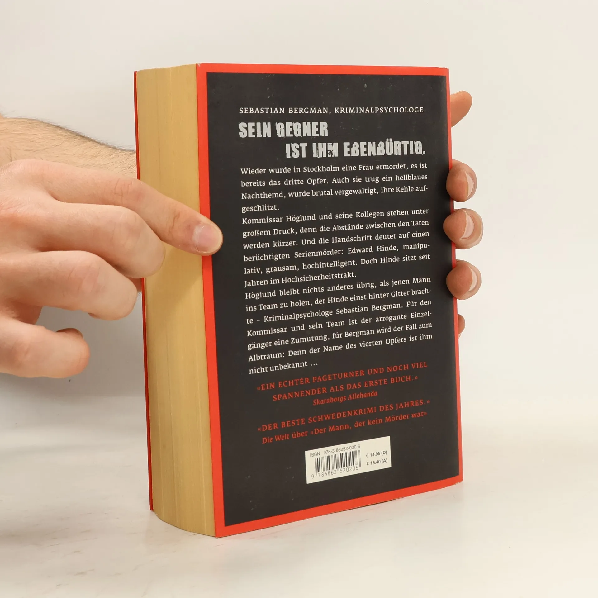 Sebastian Bergman, Kriminalpsychologe: SEIN GEGNER IST IHM EBENBÜRTIG. Wieder wurde in Stockholm eine Frau ermordet, es ist bereits das dritte Opfer. Auch sie trug ein hellblaues Nachthemd, wurde brutal vergewaltigt, ihre Kehle aufgeschlitzt. Kommissar Höglund und seine Kollegen stehen unter großem Druck, denn die Abstände zwischen den Taten werden kürzer. Und die Handschrift deutet auf einen berüchtigten Serienmörder: Edward Hinde, manipulativ, grausam, hochintelligent. Doch Hinde sitzt seit Jahren im Hochsicherheitstrakt. Höglund bleibt nichts anderes übrig, als jenen Mann ins Team zu holen, der Hinde einst hinter Gitter brachte – Kriminalpsychologe Sebastian Bergman. Für den Kommissar und sein Team ist der arrogante Einzelgänger eine Zumutung, für Bergman wird der Fall zum Albtraum: Denn der Name des vierten Opfers ist ihm nicht unbekannt  ... Sebastian Bergmans zweiter Fall