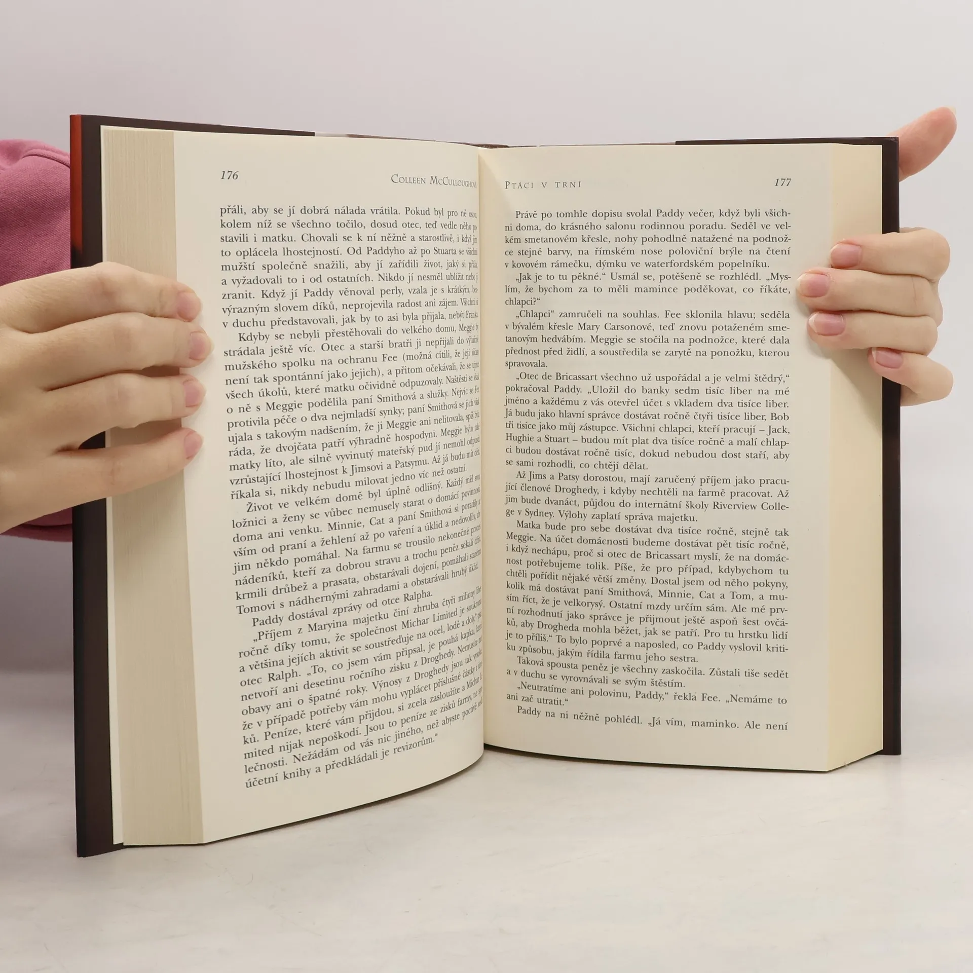 Podmanivý příběh okouzluje od svého vzniku miliony čtenářů. Australská prozaička v něm líčí více než půlstoletí v životě farmářského rodu Clearyů, jehož členové přicházejí z chudých poměrů na bohatou usedlost v australském vnitrozemí. Ze širokého okruhu hrdinů a dějových linií, které zavádějí čtenáře do australské buše, na bojiště druhé světové války i do vatikánských církevních kruhů, vystupují do popředí nezapomenutelné postavy farmářské dcery Meggie a mladého kněze Ralpha, kteří jsou osudově spjatí skrývaným milostným vztahem.