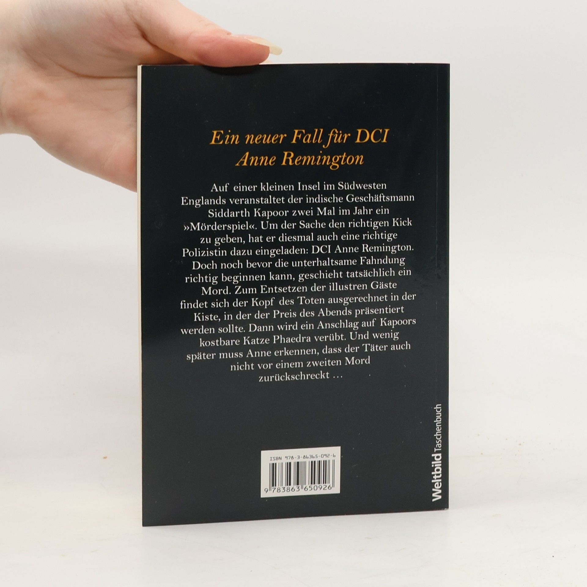 Ein neuer Fall für DCI Anne Remington Auf einer kleinen Insel im Südwesten Englands veranstaltet der indische Geschäftsmann Siddarth Kapoor zwei Mal im Jahr ein "Mörderspiel". Um der Sache den richtigen Kick zu geben, hat er diesmal auch eine richtige Polizistin dazu eingeladen: DCI Anne Remington. Doch noch bevor die unterhaltsame Fahndung richtig beginnen kann, geschieht tatsächlich ein Mord. Zum Entsetzen der illustren Gäste findet sich der Kopf des Toten ausgerechnet in der Kiste, in der der Preis des Abends präsentiert werden sollte. Dann wird ein Anschlag auf Kapoors kostbare Katze Phaedra verübt. Und wenig später muss Anne erkennen, dass der Täter auch nicht vor einem zweiten Mord zurückschreckt ...