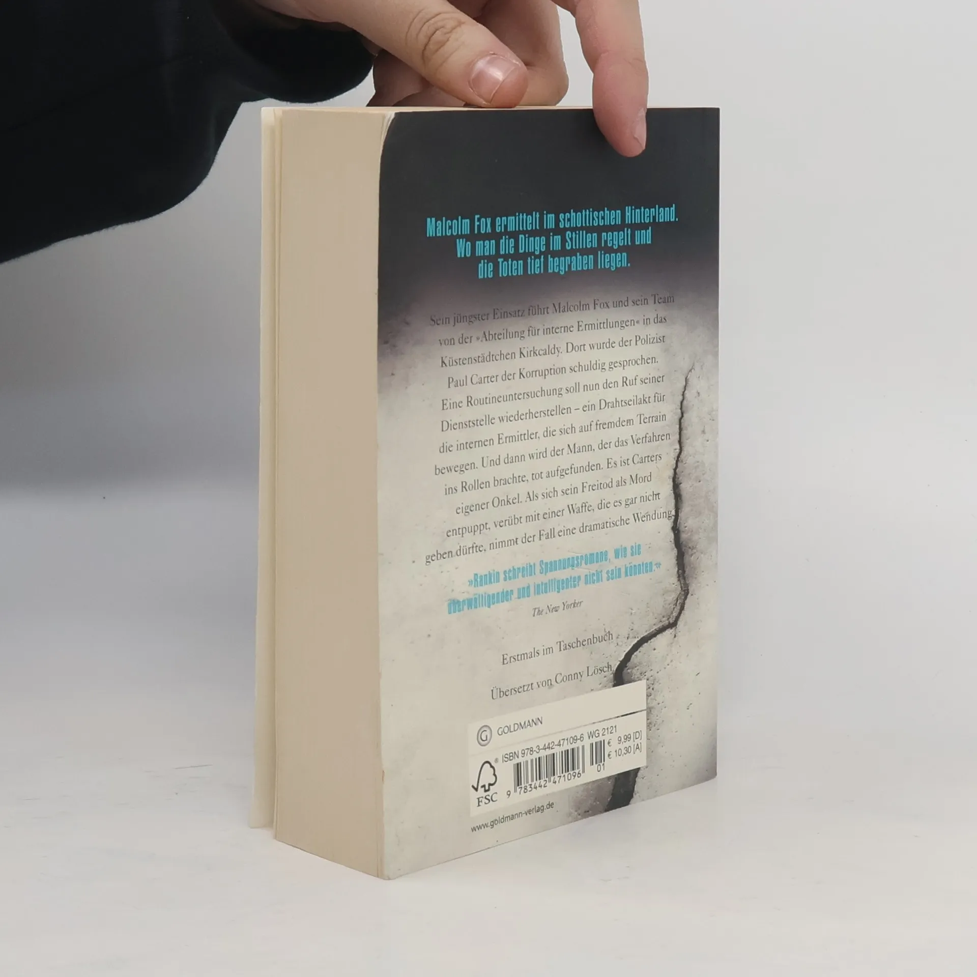 Malcolm Fox ermittelt im schottischen Hinterland. Wo man die Dinge im Stillen regelt und die Toten tief begraben liegen. Ihr jüngster Einsatz führt Malcolm Fox und sein Team von der „Abteilung für interne Ermittlungen“ auf die schottische Halbinsel Fife in das Küstenstädtchen Kirkcaldy. Dort wurde der Polizist Paul Carter gerade der Korruption schuldig gesprochen. Eine Routineuntersuchung soll nun den Ruf seiner Dienststelle wiederherstellen – ein Drahtseilakt für die internen Ermittler, die sich auf fremdem Terrain bewegen. Und dann wird der Mann, der das Verfahren ins Rollen brachte, tot aufgefunden. Es ist Carters eigener Onkel. Als sich sein Freitod als Mord entpuppt, verübt mit einer Waffe, die es gar nicht geben dürfte, nimmt der Fall eine dramatische Wendung. Und plötzlich steht weit mehr auf dem Spiel als bloß der Ruf der Polizei.