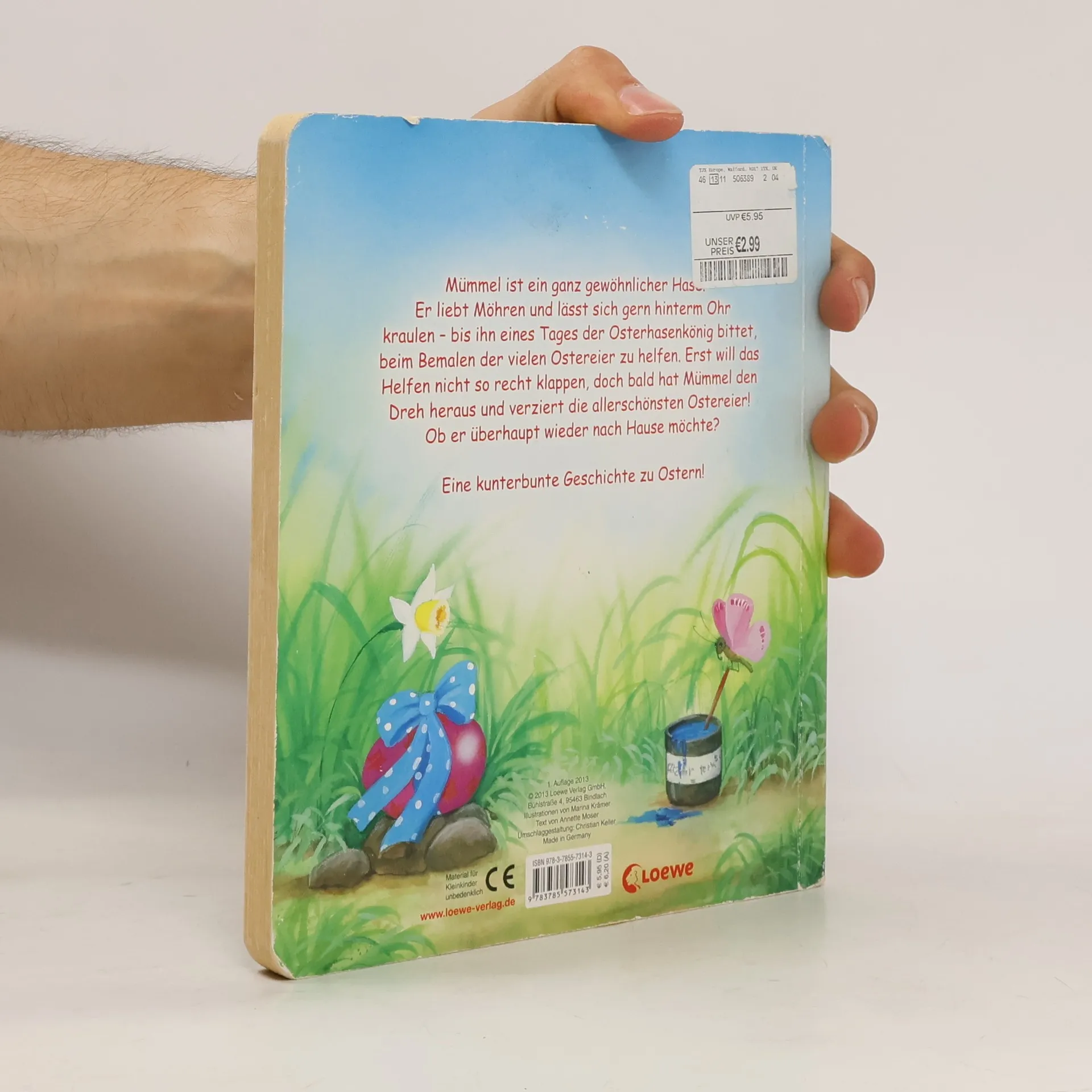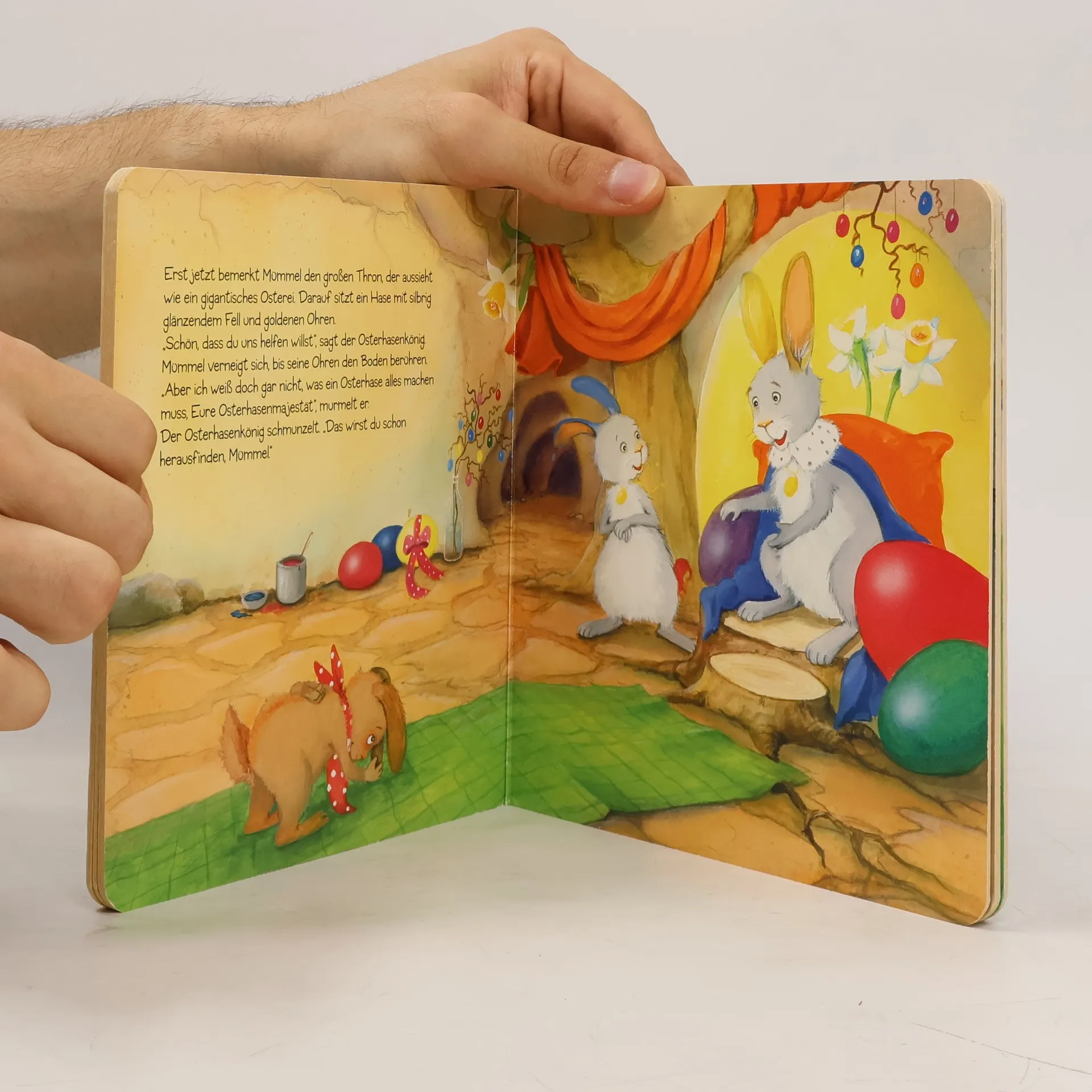 Mümmel ist ein ganz gewöhnlicher Hase. Er liebt Möhren und lässt sich gern hinterm Ohr kraulen – bis ihn eines Tages der Osterhasenkönig bittet, beim Bemalen der vielen Ostereier zu helfen. Erst will das Helfen nicht so recht klappen, doch bald hat Mümmel den Dreh heraus und verziert die allerschönsten Ostereier! Ob er überhaupt wieder nach Hause möchte? Eine kunterbunte Geschichte zu Ostern.