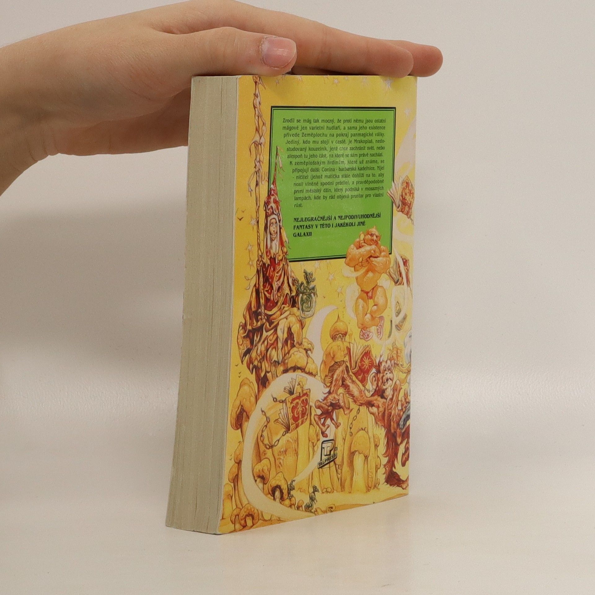 Zrodil se mág tak mocný, že proti němu jsou ostatní mágové jen varietní hudlaři, a sama jeho existence přivede Zeměplochu na pokraj panmagické války. Jediný, kdo mu stojí v cestě, je Mrakoplaš, nedostudovaný kouzelník, jenž chce zachránit svět, nebo alespoň tu jeho část, na které se sám právě nachází. K zeměplošským hrdinům, které už známe, se připojují další: Conina – barbarská kadeřnice, Nijel-ničitel (jehož matička stále dohlíží na to, aby nosil vlněné spodní prádlo), a pravděpodobně první městský džin, který podniká v mosazných lampách, kde by rád objevil prostor pro vlastní růst.