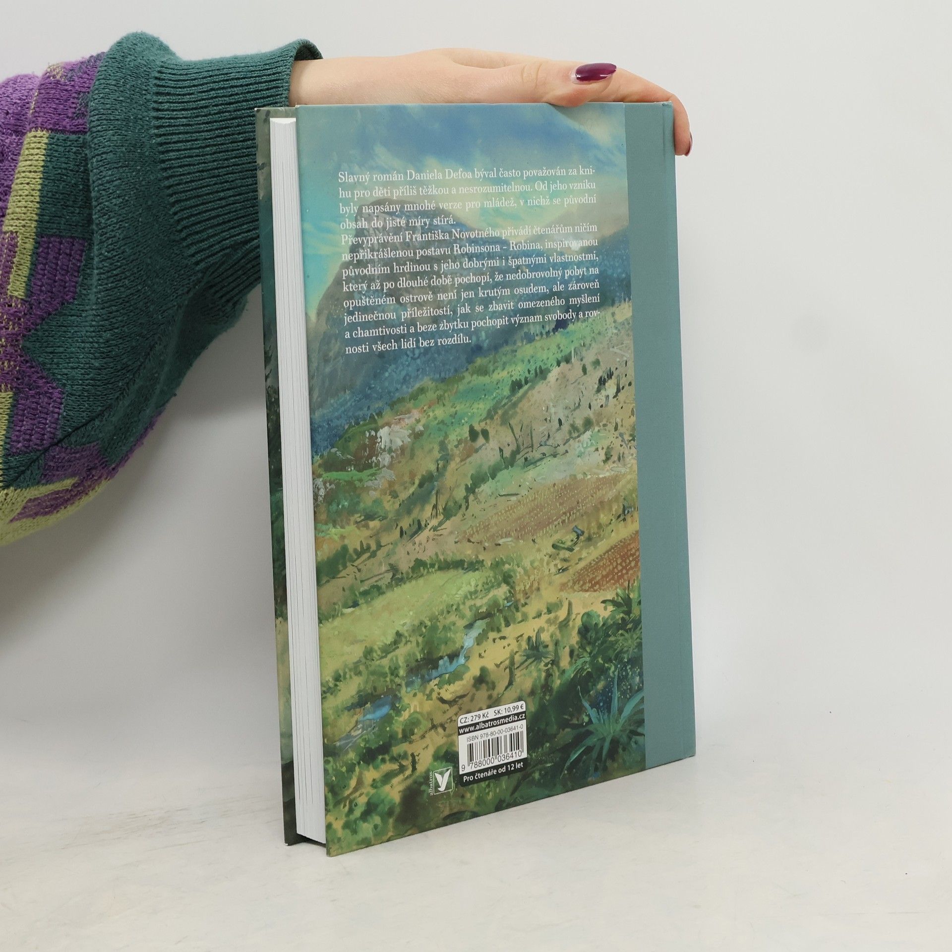 Slavný román Daniela Defoa býval často považován za knihu pro děti příliš těžkou a nesrozumitelnou. Od jeho vzniku byly napsány mnohé verze pro mládež, v nichž se původní obsah do jisté míry stírá. Převyprávění spisovatele Františka Novotného se osm let od prvního vydání stalo doslova novodobou klasikou. Přibližuje čtenářům ničím nepřikrášlenou postavu Robinsona – Robina, inspirovanou původním hrdinou s jeho dobrými i špatnými vlastnostmi. Hrdina po dlouhé době pochopí, že nedobrovolný pobyt na opuštěném ostrově není jen krutým osudem, ale zároveň jedinečnou příležitostí, jak se zbavit omezeného myšlení a chamtivosti. Kniha je doprovázena jedinečnými ilustracemi Zdeňka Buriana.