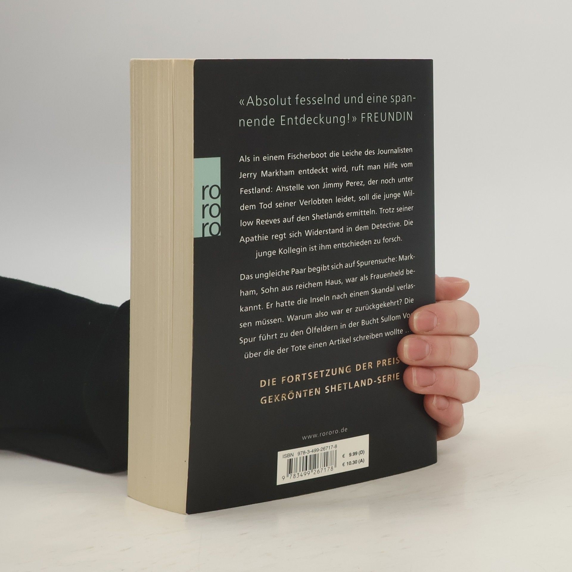 Als in einem Fischerboot die Leiche des Journalisten Jerry Markham entdeckt wird, ruft man Hilfe vom Festland: Anstelle von Jimmy Perez, der noch unter dem Tod seiner Verlobten leidet, soll die junge Willow Reeves auf den Shetlands ermitteln. Trotz seiner Apathie regt sich Widerstand in dem Detective. Die junge Kollegin ist ihm entschieden zu forsch. Das ungleiche Paar begibt sich auf Spurensuche: Markham, Sohn aus reichem Haus, war als Frauenheld bekannt. Er hatte die Inseln nach einem Skandal verlassen müssen. Warum also war er zurückgekehrt? Die Spur führt zu den Ölfeldern in der Bucht Sullum Voe, über die der Tote einen Artikel schreiben wollte ... Die Fortsetzung der preisgekrönten Shetland-Serie.
